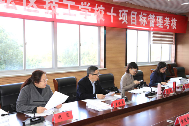 2019年11月21日上午,由常州市人社局职建处陈俊主任领衔的专家组一行四人来到省金坛中专进行常州市技工院校十项目标管理考核,金坛区人社局王志东副局长陪同视导。省金坛中专卞勇平校长、黄建伟副校长热情接待了专家组一行,相关职能部门及系部负责人参与了会议。