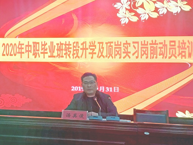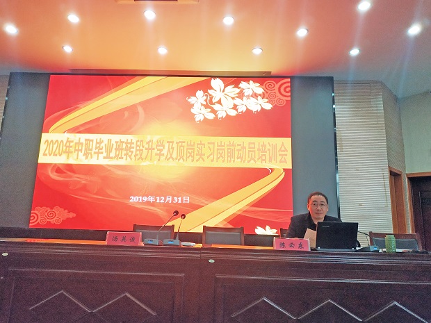 12月31日下午,我校在报告厅召开了2020届中职毕业班学生顶岗实习岗前培训动员会,会议由校企合作处陈云东处长主持。