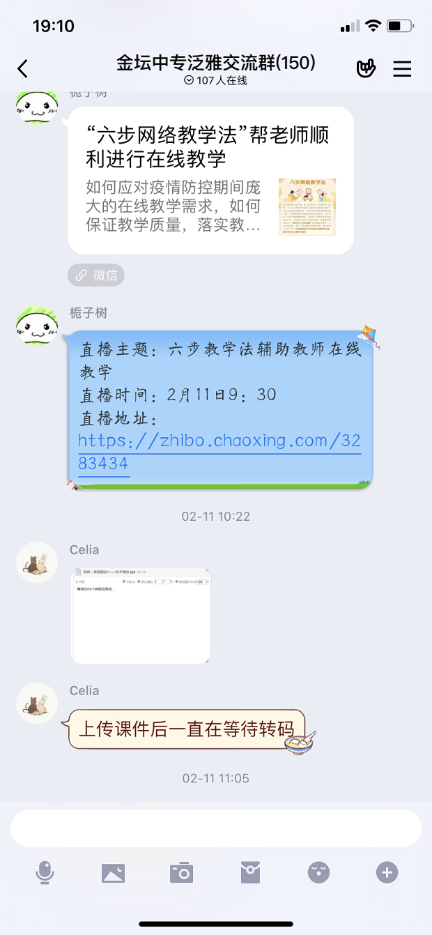在新冠肺炎传染疫情防控延迟开学期间,学校组织了网络课堂使用直播培训,帮助教师积极适应新环境、新形势,切实提升信息化教学水平,保障教学质量与教学进度。学校教师充分利用网络空间和充足的时间进行专业知识的学习、专业技能的提升。在自主学习的浓厚氛围以及资源共享的环境下,老师们都取得了很大的收获。