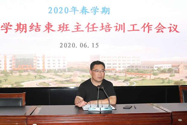 弹指一挥间,本学期即将结束,为了继续扎实落实好常态化疫情防控措施,总结、分享班主任工作经验,布置学期结束相关工作,6月15日下午,我校在学校报告厅召开2020年春学期学期结束班主任培训工作会议。参加会议的有汤英俊副书记、学工处、系部学生管理人员及全校班主任、见习班主任。