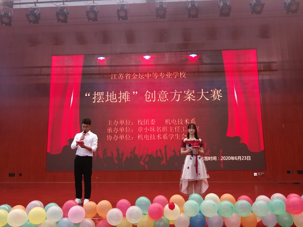 为积极响应国家“地摊经济”的号召,培养创新人才,构建良好创新文化环境,提升学生的就业能力,丰富校园课余生活,6月23日下午,由省金坛中专校团委、机电技术系主办,章小妹名班主任工作室承办的机电技术系“摆地摊”创意方案大赛决赛在校体育馆如期举行。经过预赛选拔,共有10个优秀作品进入本次决赛。