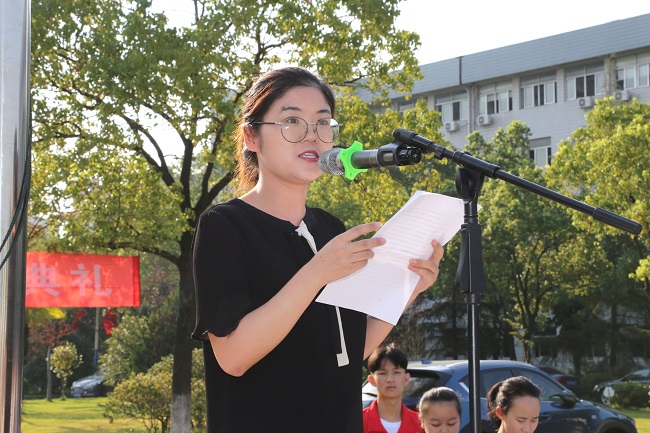 教师代表沈洁老师亲切寄语新生在学习上齐头并进,生活中友爱为先,涵养学识素养,培养人格健全,真情融入集体;鼓励老生要勇敢认知自我,积极面对挑战,不断地实现超越。