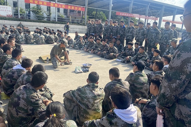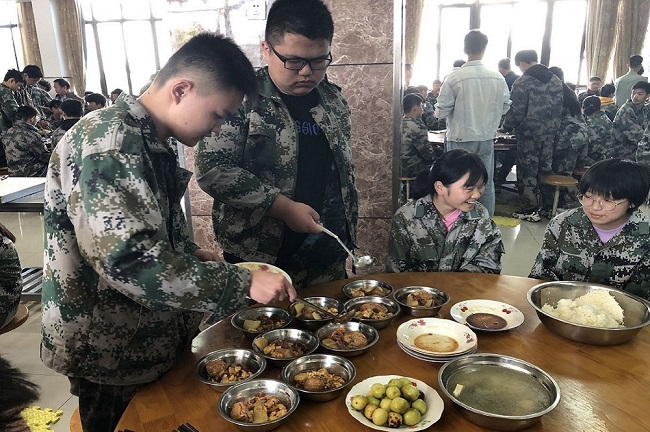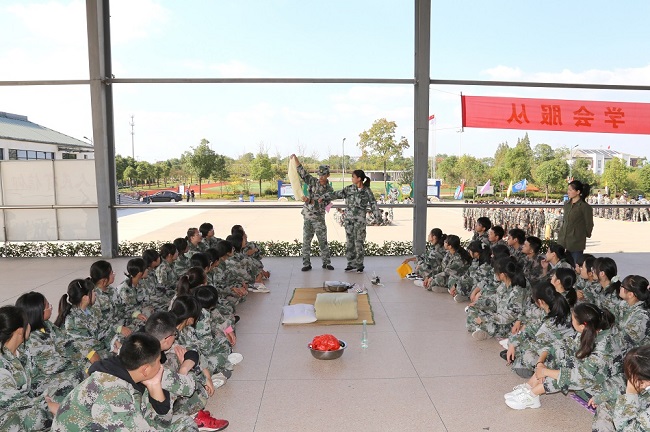 清晨5:45分,401宿舍的五人在“铃铃铃……”的闹钟声中悠悠转醒,朦胧着睡眼,开启了平凡而又不平凡的一天。一切又如寻常般,按部就班的到来:起床刷牙洗脸……窗外艳阳高照着,仿佛在向全世界昭示它的好心情。慢步走至教室,发大家都异常亢奋,对即将到来的军训生活满怀期待。早读过后,大家非但没有平息下自己激动的心情,反而将热情澎湃的气氛烘到了极至。排队行至校门口,一辆辆客运汽整齐地排列成横队,静候我们的到来,直至上了车,大家仍在热大朝天地谈论我们在未来七日内所会遇到哪些困难挑战。 到达目的地后,随即有一位教官迎上来,询问了我们几个问题后,便迅速让我们整好队伍。走至宿舍楼前,教官给我们下达了第一个在任务:要求全班在十分钟后穿戴好迷彩服,然后仍在原地集合。在听到教官的“解散”指令后,我们群鸟作兽般“唰”地分散开来,用百来冲刺的速度去寻我们宿舍所处的位置,有到我完全穿戴好迷彩服时,才有一种不真实感浮上心间,一种肃穆庄严的使命感陡然而升,仿佛我已经成为一名合格的新生兵,下一秒就可以为国家手光添彩似的。快速到达集合地点,教官带领我们去训练场开始了我们的新征程,总教官上来就给了我们一个下马威,细细地给我们讲解了军训制度,接下来就由各班教官单独培训,上午在阳光的暴晒下,我们训练了军姿的正确做法。脚后跟在长时间的站或蹲、坐的训练中不知不觉地变得麻木僵劲、酸痛。 时间总是匆匆逝去,转眼就到了午饭时间,每桌的小值日生尽心尽责地给我们布置碗筷、分发饭菜以及收拾餐后残余。 因为过于亢奋的原因,导致午体都没有分利用,急急忙忙地赶去操场集合。大家在互相帮助之中套好被子,理好床铺。下午,教官给我们进行了内务培训,内容丰富多样,包括:叠被子、鞋子、牙杯、毛巾等物品的摆放,以及地面的清洁,完成后就去餐厅吃了晚饭,在经过晚训后,劳累了大半天的身子早已疲惫不堪,匆匆洗漱后就早早地睡下了。