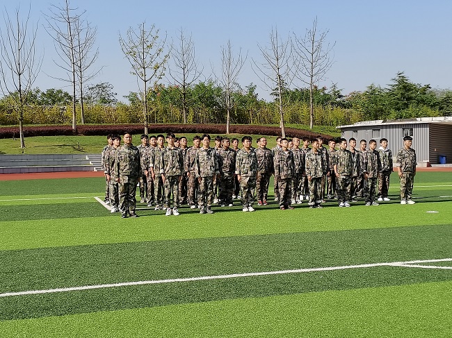 早上我们有跑操,我们绕着跑道跑了一圈就到训练场集合了。早上的训练我们主要是练习三大步伐和练军歌,不知不觉便到了午饭时间。