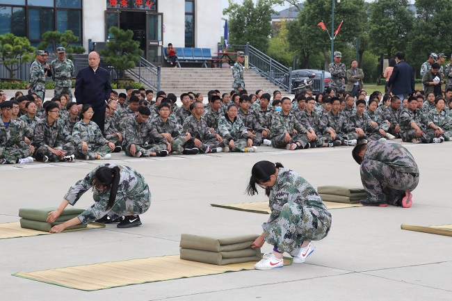 10月14日,多宝登录平台2020级新生军训结营仪式在常州市金坛中小学生综合实践基地隆重举行。我校汤英俊副校长、学生工作处李志斌处长、学生工作处蒋云霞副处长、本科部高一年级组长倪梅花老师、智能制造系主任助理杨彦娟、经贸管理系党支部书记黄火俊、汽车工程系主任助理兼校团委副书记张璐、基地曹志祥副主任、我校2020级全体新生和班主任参加了结营仪式。仪式由学工处蒋云霞副处长主持。 结营仪式首先从队列表演拉开帷幕,表演队伍阵容整齐、步伐矫健、口号响亮、军姿威武;内务表演时,只见一转眼间,一床床蓬松的被子通过同学们“叠、压、捋”,变成了四四方方的“豆腐块”;精彩的拉歌表演更赢得了现场的热烈掌声。各项表演充分展示了此次军训的丰硕成果,更展现了金坛中专学子的良好精神风貌。 随后,学生工作处李志斌处长宣读了《表彰决定》,对汇操表演和综合评比的优秀班级及军训优秀学生个人进行了表彰。