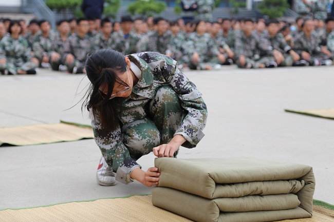 接着,曹主任发表讲话。他教导同学们把军训中收获的令行禁止的作风、拼搏克难的精神和奋发向上的斗志内化为成长的动力、成才的定力和成功的推力,在今后的学习生活中不断进取,创造辉煌。 汤校长最后发讲话,他首先对付出辛勤劳动、为同学们树立光辉榜样的各位教官表示崇高的敬意,向为这次军训圆满成功而默默奉献的工作人员表示诚挚的谢意,向在训练中表现出顽强毅力和拼搏精神的同学们表示热烈的祝贺。他希望同学们以这次军训为起点,把军训中的收获的坚韧不拔的意志、坚定不移的毅力、雷厉风行的作风继续保持下去。在顺境中审视自我,在逆境中砥砺自我,成为更好的自己。(撰稿:李志斌)