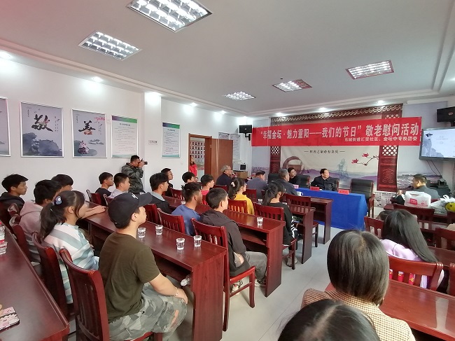 为弘扬敬老爱老的传统文化,传承老一辈爱岗敬业、艰苦奋斗的优良作风,10月24日下午,校团委团委组织我校宁陕学生和沧海志愿者同学走进汇贤社区,开展了“幸福金坛,魅力重阳”敬老慰问活动,为老人们送上了欢乐和祝福。 活动伊始,校团委书记徐森老师介绍了重阳节的节日起源和演变、重阳节民俗文化、神话传说、著名诗词等方面的知识,随后,活动邀请的原金坛市发改委退休干部韩文朴和原市纪委退休干部刘煥为同学们介绍了金坛的发展历史、城市建设以及他们年轻时战天斗地的火热生活,老一辈们鼓励学生珍惜当下的美好生活,学好专业技能,开阔发展视野,为社会多做贡献。 活动中,徐现铭同学代表沧海志愿者协会发出《尊老爱老敬老倡议书》,呼吁青年人用感恩之心宽容、理解、关爱老人,帮助老人,关爱孤寡老人。活动结束后,志愿者为亲临现场的老一辈赠送了慰问品。 我校始终坚持“立德树人、德育为先”的教育理念,充分利用传统节日积极开展特色德育活动,收到了良好的育人效果。此次重阳敬老活动的成功开展,进一步营造了尊老敬老的文化氛围,增强了学生的爱老助老意识,激发了学生参与敬老活动的热情,让学生更加懂得了感恩、珍惜和责任担当。