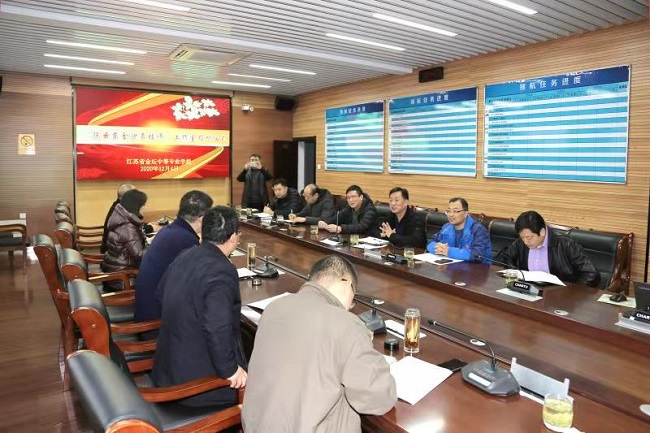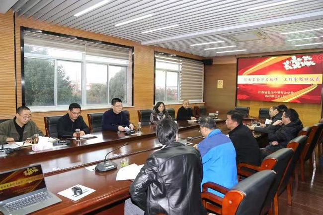 2020年12月4日下午,金坛区人社局相关领导莅临我校,为我校陈云东老师举行了“陈云东金沙名技师工作室”授牌仪式,并围绕职业技能等级认定工作相关问题进行了研讨。 金坛区人社局王志东副局长、就业中心王洪波主任、虞健副主任、人才开发科冯建波科长、就业中心培训管理科吴志科长、王伟国、周凯以及我校卞勇平校长、林静书记,李建中副校长、杨益粉副校长、汤英俊副校长、陈云东处长参加了会议。