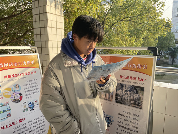 值《中华人民共和国反恐怖主义法》颁布五周年之际,为切实加强《反恐怖主义法》宣传普及教育,提高广大师生反恐防暴意识,我校于12月17日下午,与常州市公安局金坛分局、金坛区教育局等部门联合举办了“反恐防恐”宣传教育活动。 本次活动由金坛分局国保大队的沈警官与陈警官担任主讲,带来了一场精彩的反恐工作讲座,他们结合新疆暴恐、东突恐怖组织等恐怖活动给我校学生讲解了我国现今的安全形势,就恐怖主义活动的特点、种类及如何防范恐怖袭击等内容给大家进行了详细的解读,并带领同学们观看展板、学习反恐宣传手册,使大家对反恐认识有了进一步的了解。 哪有什么岁月静好,不过是有人替你负重前行。和平的生活来之不易,值得我们每一个人珍惜。本次活动通过多样的形式,不但让同学们了解到恐怖主义和恐怖活动的巨大危害,而且展现了我国公安干警和武警部队为我国反恐工作作出的巨大努力与卓越贡献,更是让同学们明白应该积极配合我国反恐工作,勇敢的与恐怖主义作斗争。活动将大大增强广大师生的反恐防恐意识,提高广大师生反恐防恐和避险自救能力,营造全校上下反恐防范人人有责、反恐工作全社会共同参与的良好氛围,为确保校园安全和社会稳定提供有力保障。(撰稿:鲍彤)
