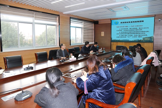 为深入贯彻学习国务院《国家职业教育改革实施方案》、教育部等九部门印发《职业教育提质培优行动计划(2020-2023年)》文件精神,加快推进职业教育现代化进程,全面落实职业教育高质量发展要求。12月17日我校特邀江苏城乡建设职业学院陈寿根副院长来我校进行专题讲座,陈院长围绕“职业院校质量保证体系的建构”主题,从内涵意蕴、建构逻辑、实践案例三大方面为大家做了精彩而独到的阐释和交流,陈院长指出质量保证体系的建构是时代命题,文化和制度是保证教育质量的两个关键因素,制度加文化方能真正提升质量,而其中又以标准为基石,诊改为关键,激励为保证。最后陈院长还结合江苏城乡建设职业学院质量保证体系构建的实践案例和大家进行了经验分享。 我校卞勇平校长对陈院长的倾力指导表示感谢,表示陈院长的精准把脉为我校质量保证体系的构建工作指明了方向,期待进一步加强学习借鉴,增进合作交流。我校将继续以“质量内涵提升、品牌特色发展”为核心,积极探索新的质量管理模式,不断完善学校质量保证体系和运行机制,强化质量意识,让质量理念渐入人心。