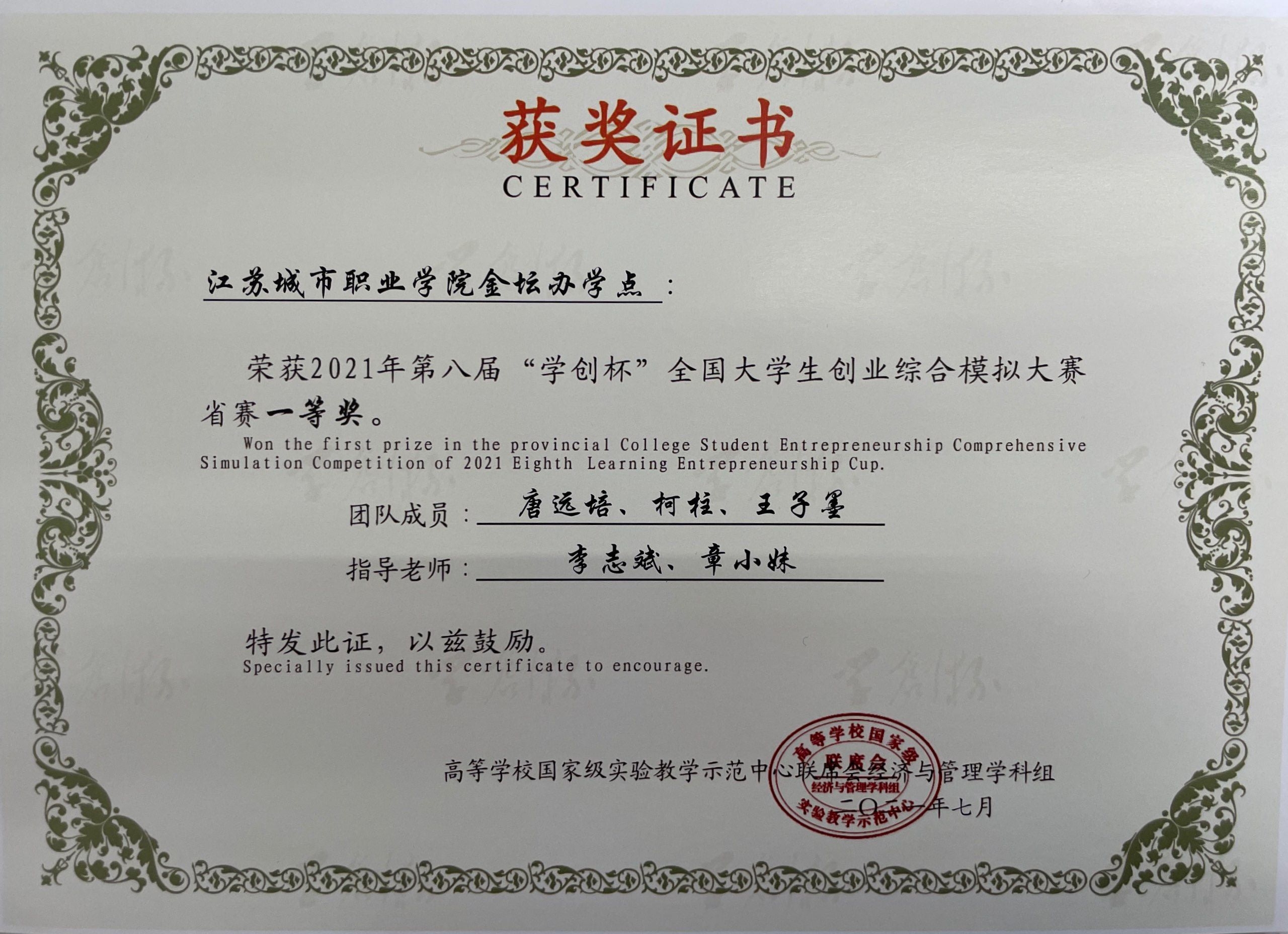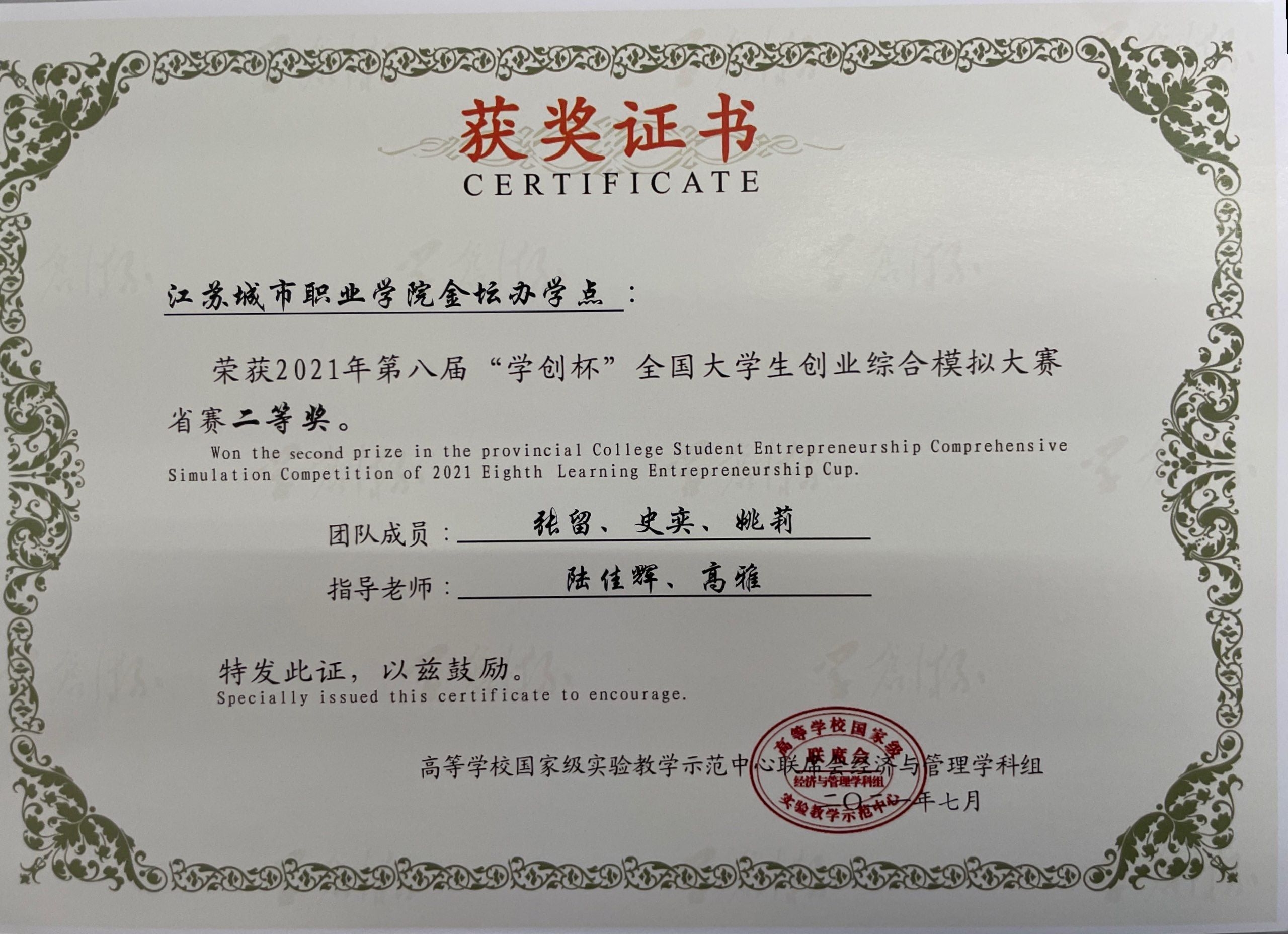 逐鹿“学创杯”,“闪光”载誉归——我校在第八届“学创杯”全国大学生创业综合模拟大赛江苏省赛中取得佳绩