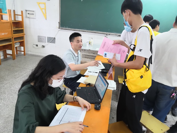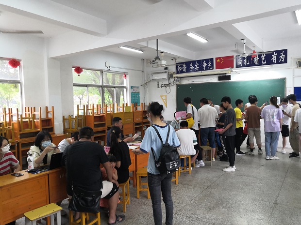 紫薇花香,荷花满塘,又是一年迎新!7月8日上午,我校2021新生报到工作全面展开。为了更好的开展2021年度新生报到工作,确保新生顺利报到,我校之前就报到工作各环节、分工、要求作了细致周到的安排部署,要求各相关部门、工作人员统一思想、恪尽职守,用热情服务和良好的金坛中专形象迎接新同学的到来。 早上8时起,新生在家长的陪同下陆续走入校园,在现场工作人员的指引下,循着指示牌,进行特异体质排查,找到报到注册教室,核对报道信息,预缴代收学费,领取正式录取通知书和暑假作业,住宿生领取生活用品单,各项工作都有条不紊地进行着。最后,新生及家长兴致勃勃地参观了校园、教室及宿舍,对自己即将在校园里度过的三年学习生活充满了好奇与期待。 接下来的三年,是孩子们人生中一个重要的阶段。在未来的三年里,你们将在这里开启梦想的新征程。惟愿你们站在新的起点,扬起梦想的风帆,师生携手,全力以赴,一起共创新的辉煌!