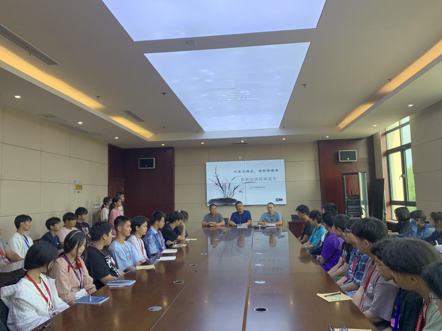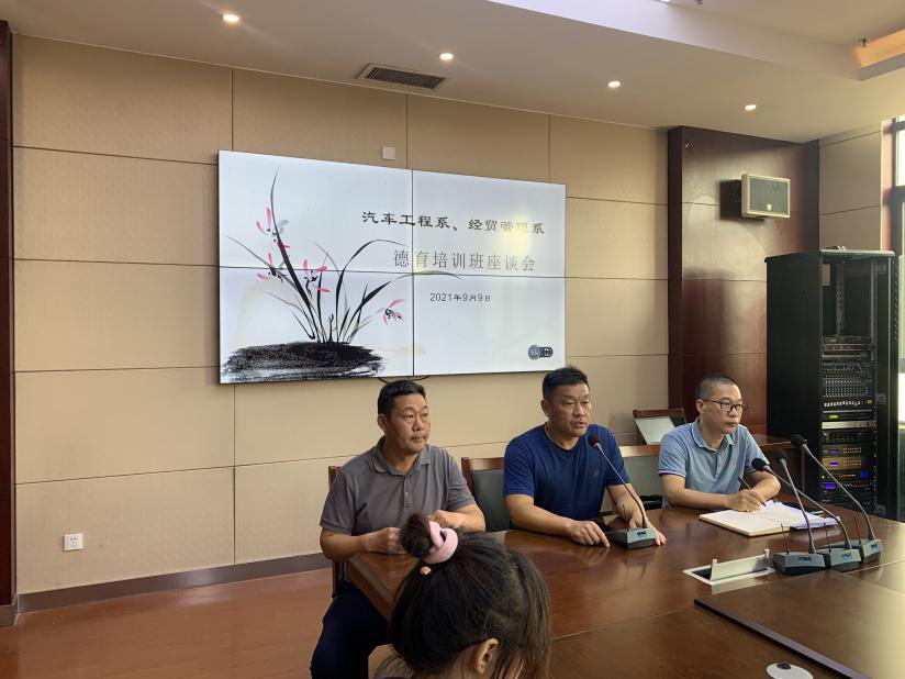 2021年9月10日,汽车工程系&经贸管理系德育培训班在体育馆二楼会议室举行开班典礼。黄火俊书记、翟卫京主任和王龙祥主任分别发表了讲话,同时预祝德育培训班取得圆满成功。