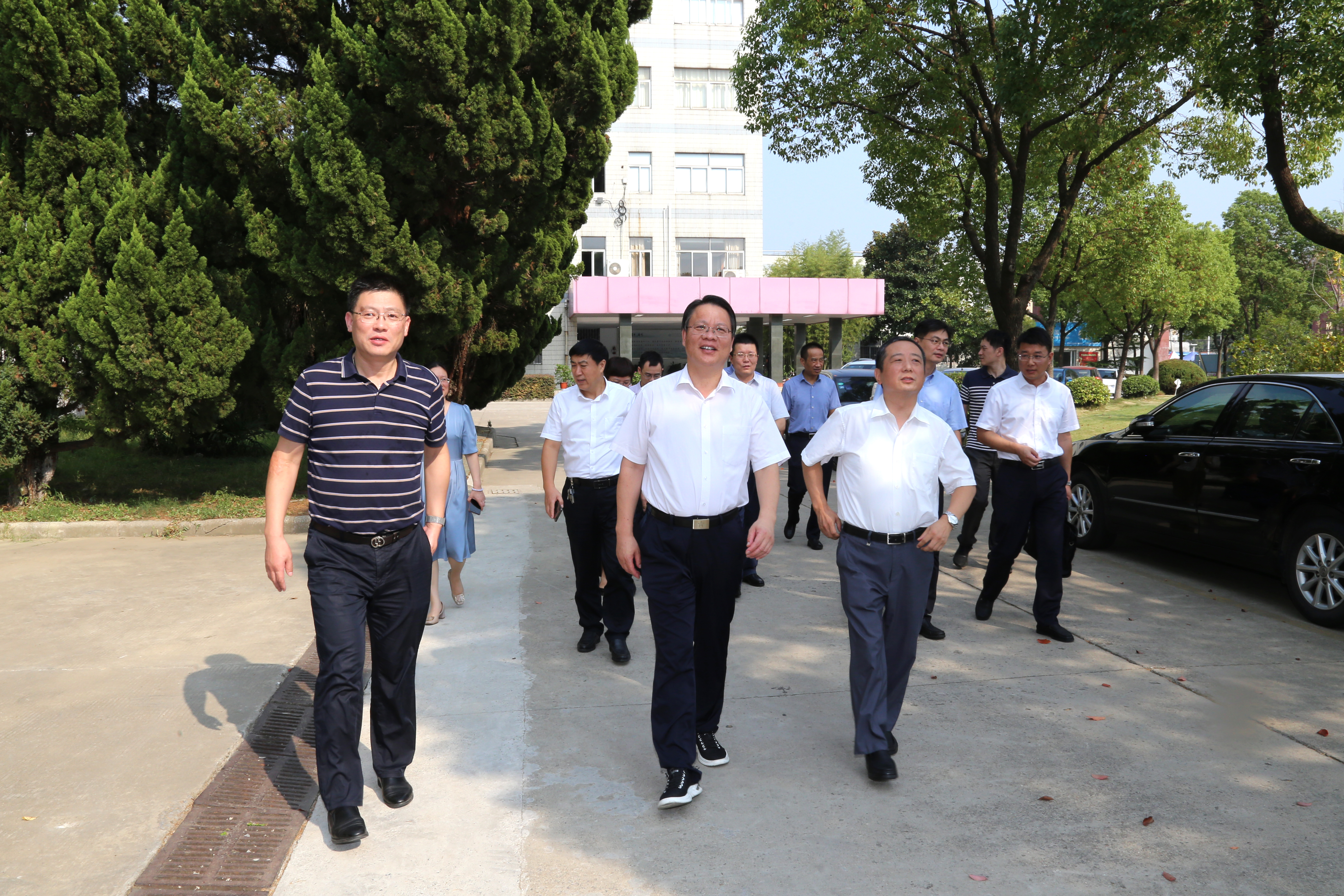 市委督查室领导首先在校园内进行现场巡视调研,卞勇平校长陪同,并介绍了学校专业群、实训基地等建设情况。