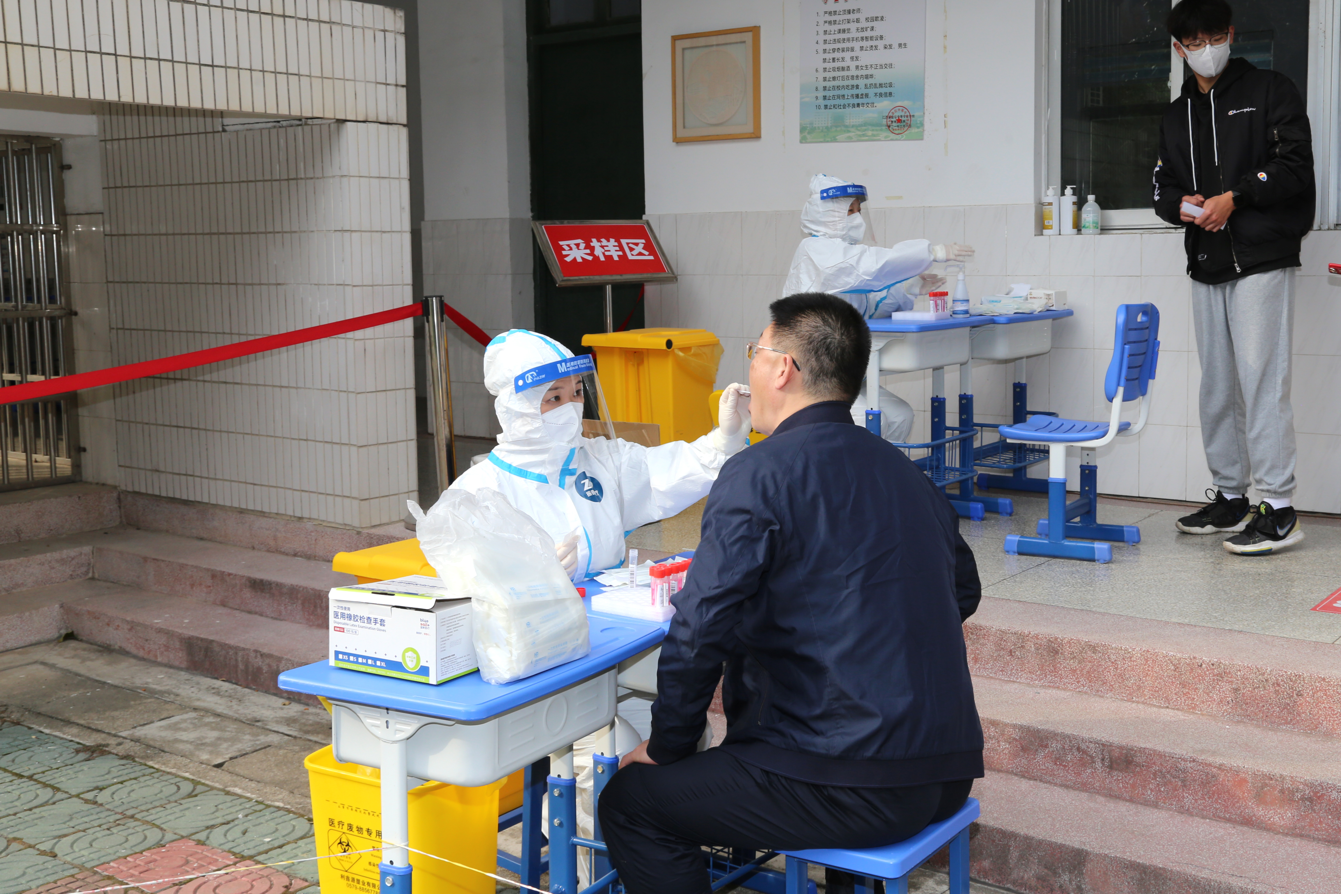 以习近平总书记关于疫情防控工作的重要指示精神为指导,全面落实各级教育主管部门关于加强疫情防控工作的要求,进一步提高政治站位,强化主体责任,增强紧迫感和使命感,以“控制传染源、切断传播途径、保障师生安全”为目标,我校于2021年11月17日下午13:30,在4号教学楼一楼,分批次(第一批)组织全体师生进行核酸检测工作。