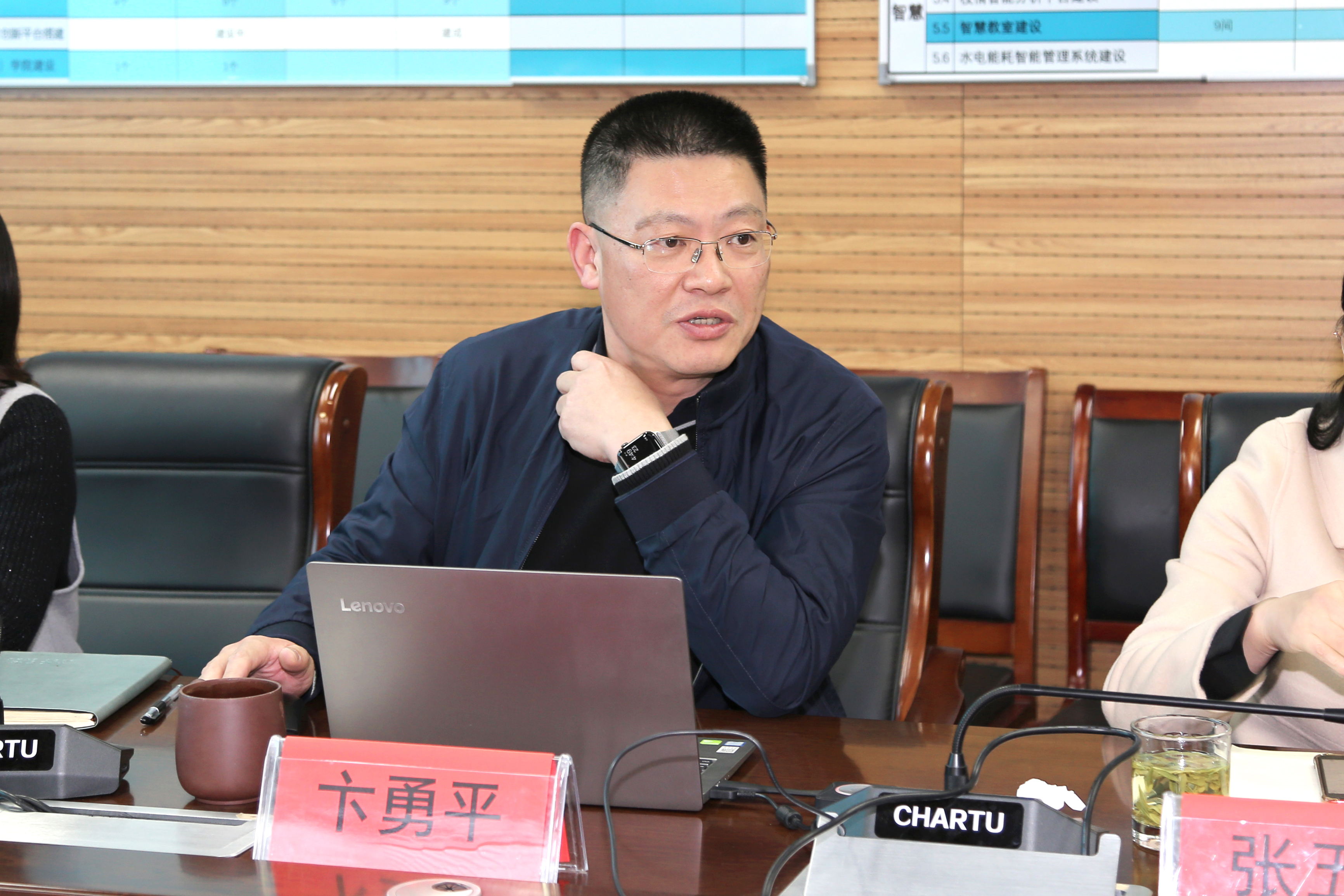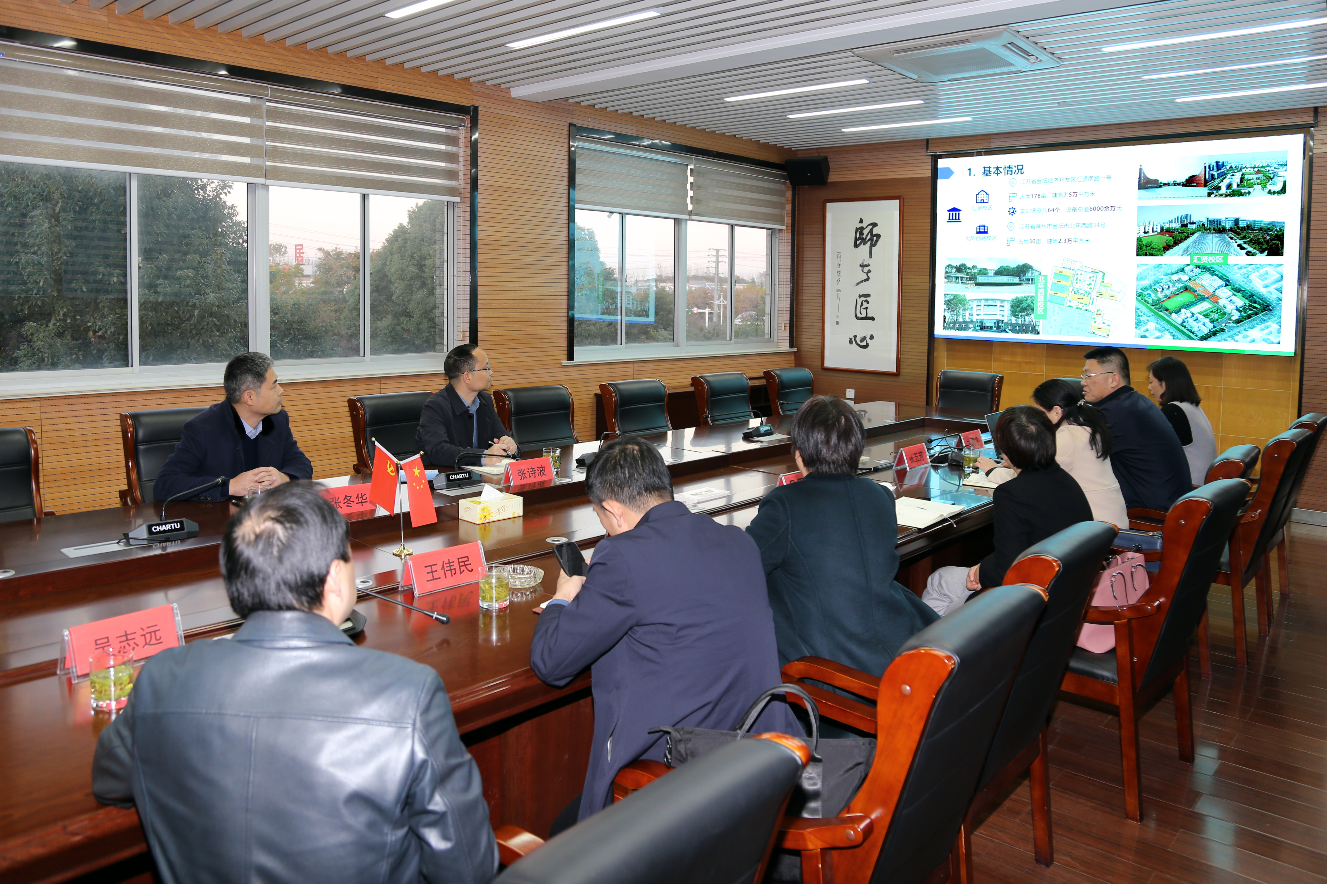 卞勇平校长首先介绍了我校基本情况和办学理念,表示将扩大人才培养,将学校建设成为世界水平、中国特色、江苏一流、金坛情怀的家门口学校。