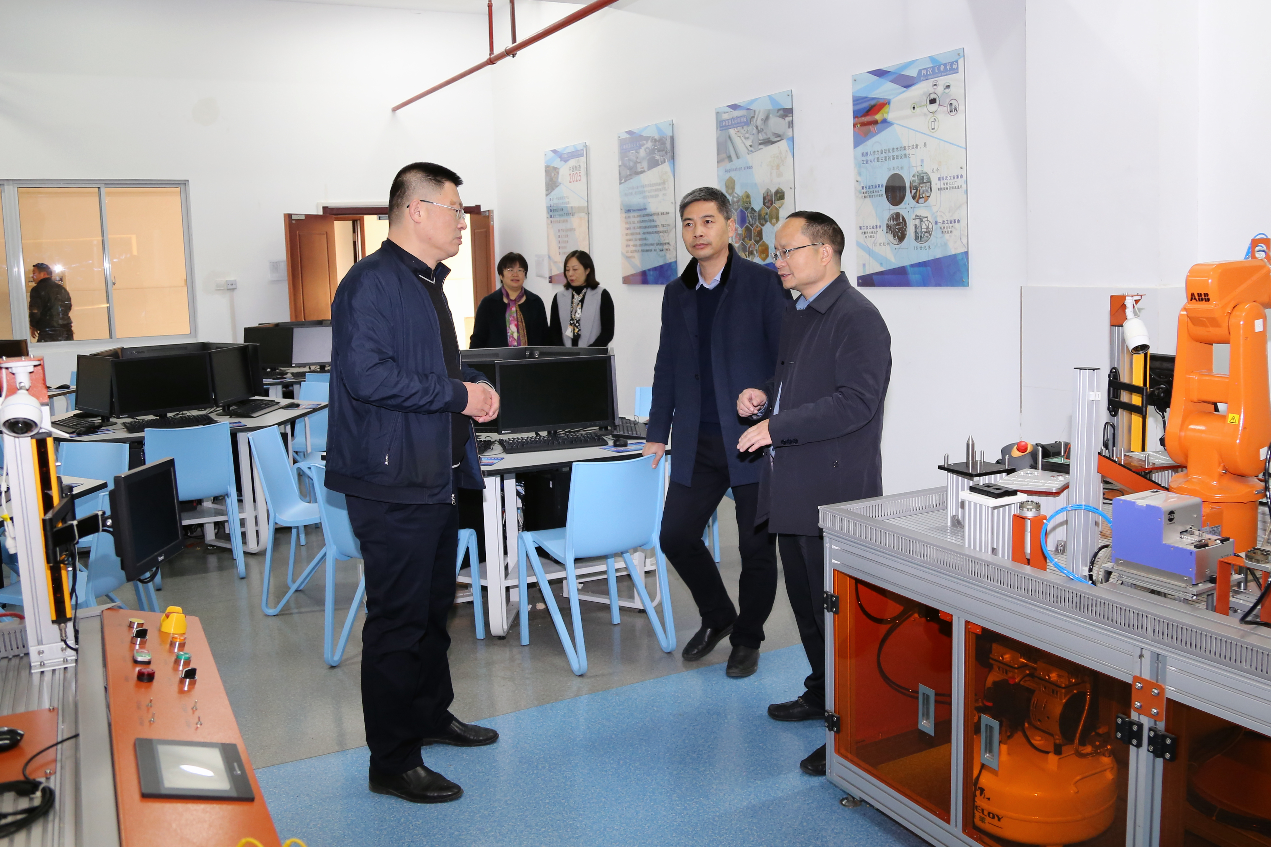 在参观过程中,双方就感兴趣的一些话题进行了坦诚的沟通和交流。双方一致认为,职业学校的发展离不开地方政府的大力扶持,而职业学校自身也须在内涵建设上下功夫,要敢于解放思想,大胆谋划,不断提升办学实力,方能增强职业学校校服务地主经济发展的能力。
