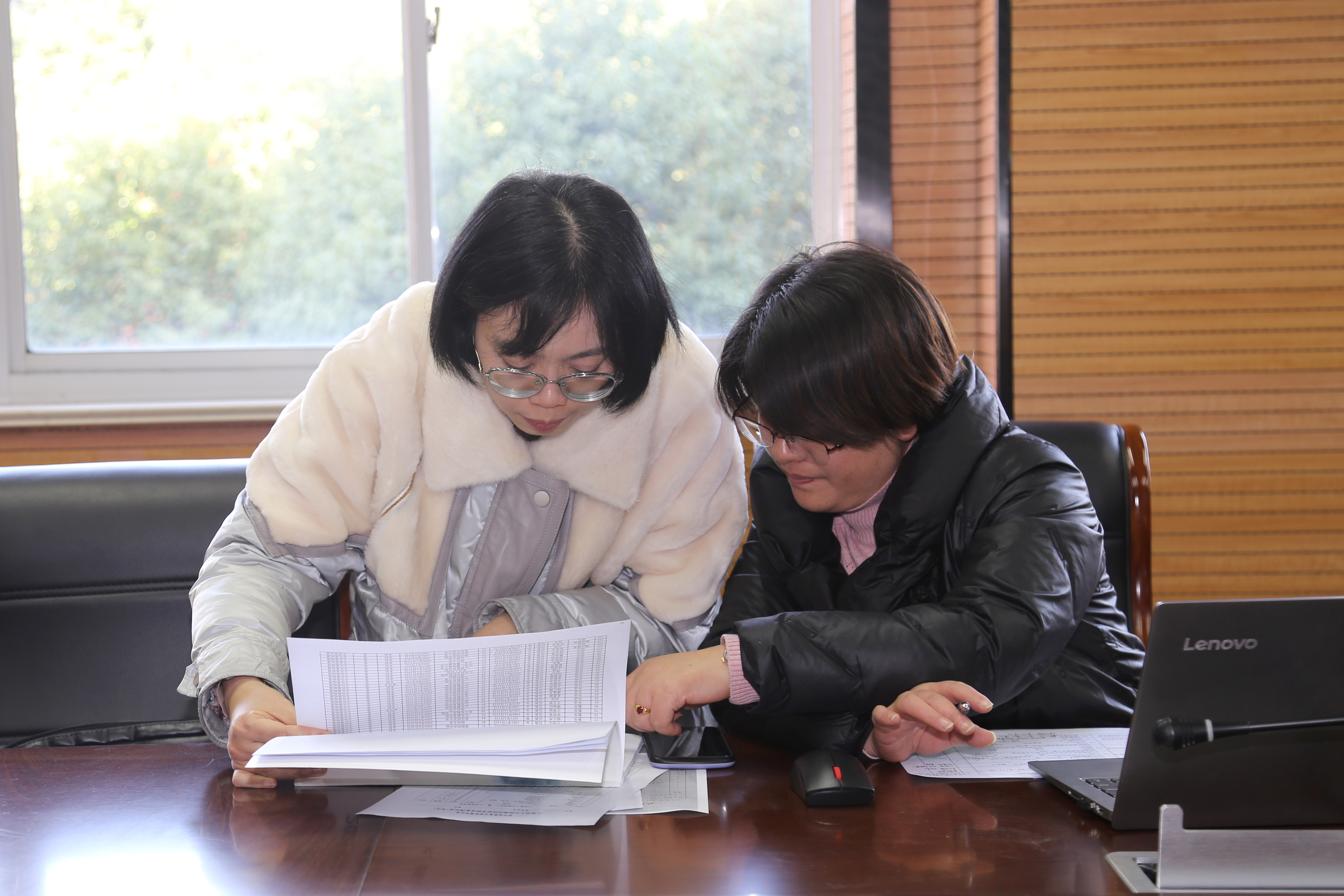 在认真听取汇报之后,专家组开始详细地查阅台帐资料,不时与学校有关人员就队伍建设、校企合作、专业建设、社会培训等情况进行面对面的沟通交流,认真核对数据,仔细梳理学校的目标管理情况,摘录相关信息。整个视导过程井然有序,一丝不苟。