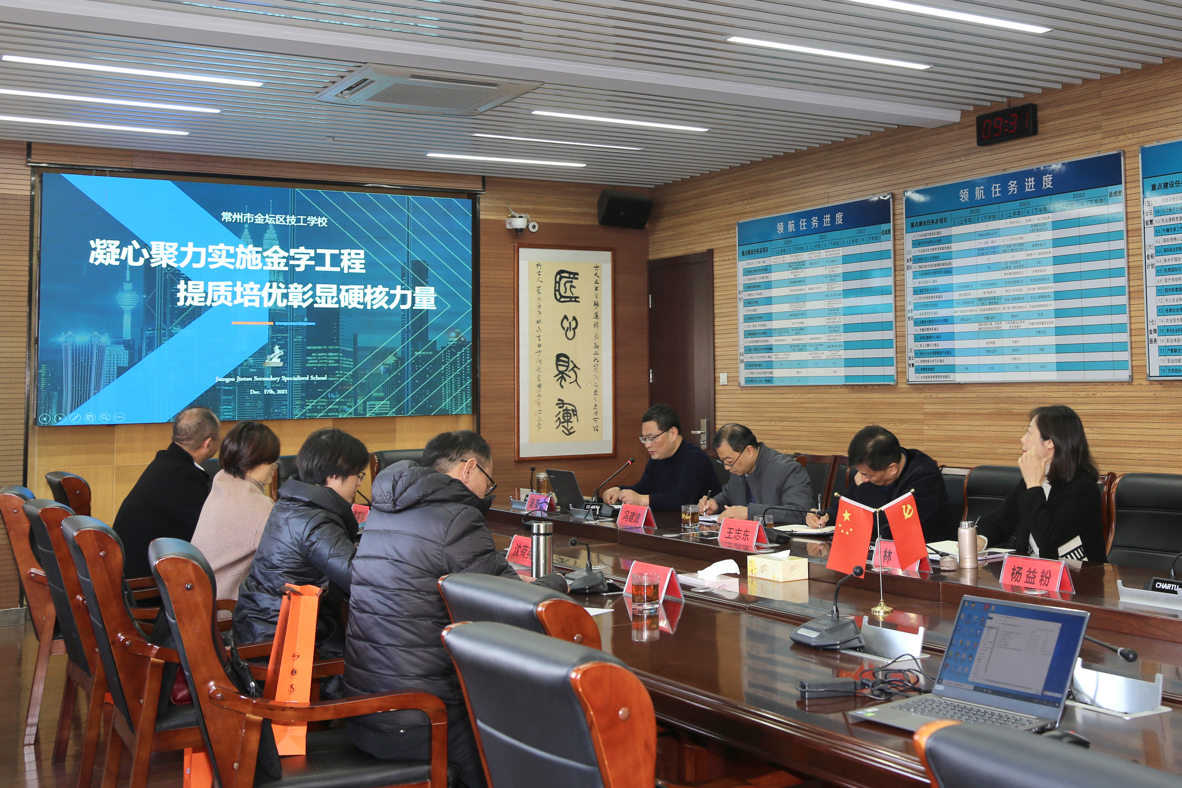 2021年12月17日上午,由常州市人社局职建处陈俊主任领衔的专家组一行四人来到省金坛中专进行常州市技工院校十项目标管理考核,金坛区人社局王志东副局长和冯建波科长陪同视导。我校党总支书记林静、副校长汤英俊热情接待了专家组一行,相关职能部门及系部负责人参与了会议。