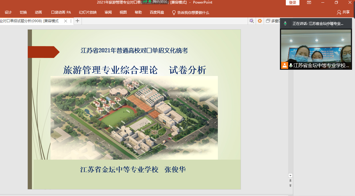 在常州市教科院杨继文主任的指导下召开线上旅游管理专业单招教研视频会议。