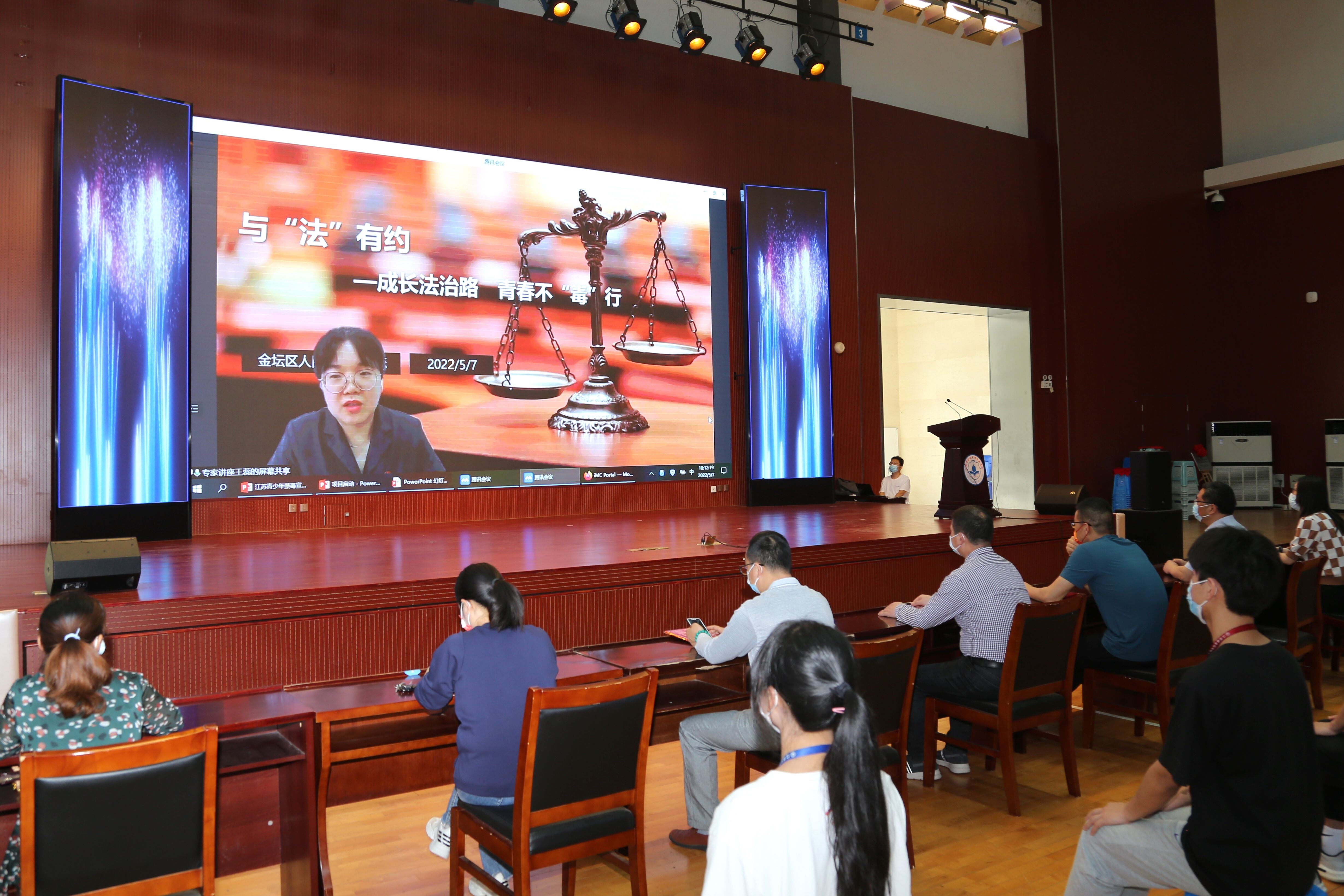 最后,金坛区人民法院王蕊法官通过线上腾讯会议的形式做了主题为《与“法”有约——成长法治路 青春不“毒”行》的禁毒知识讲座,王法官的讲座紧紧结合学生特点,用一个个生动具体的案例,以案释法,以法论事,深入浅出的报告,赢得了现场阵阵掌声。