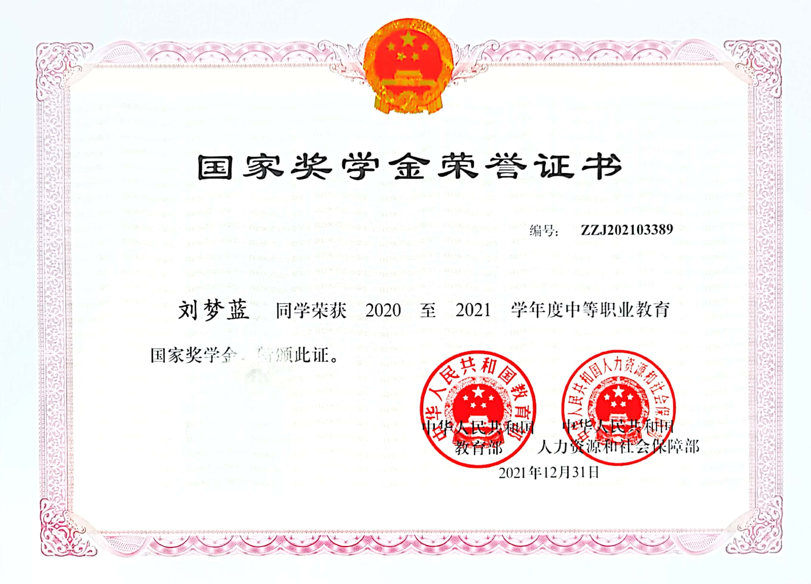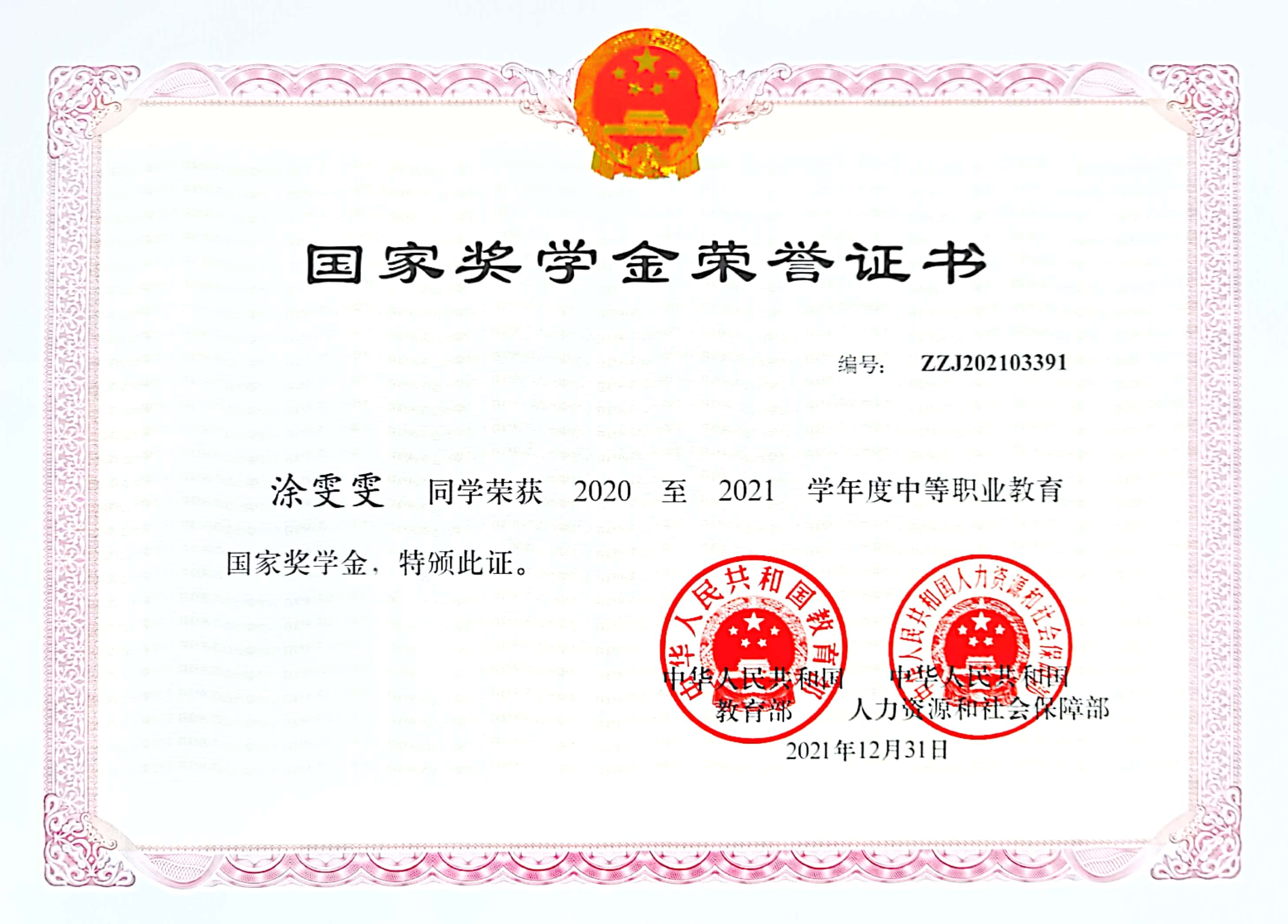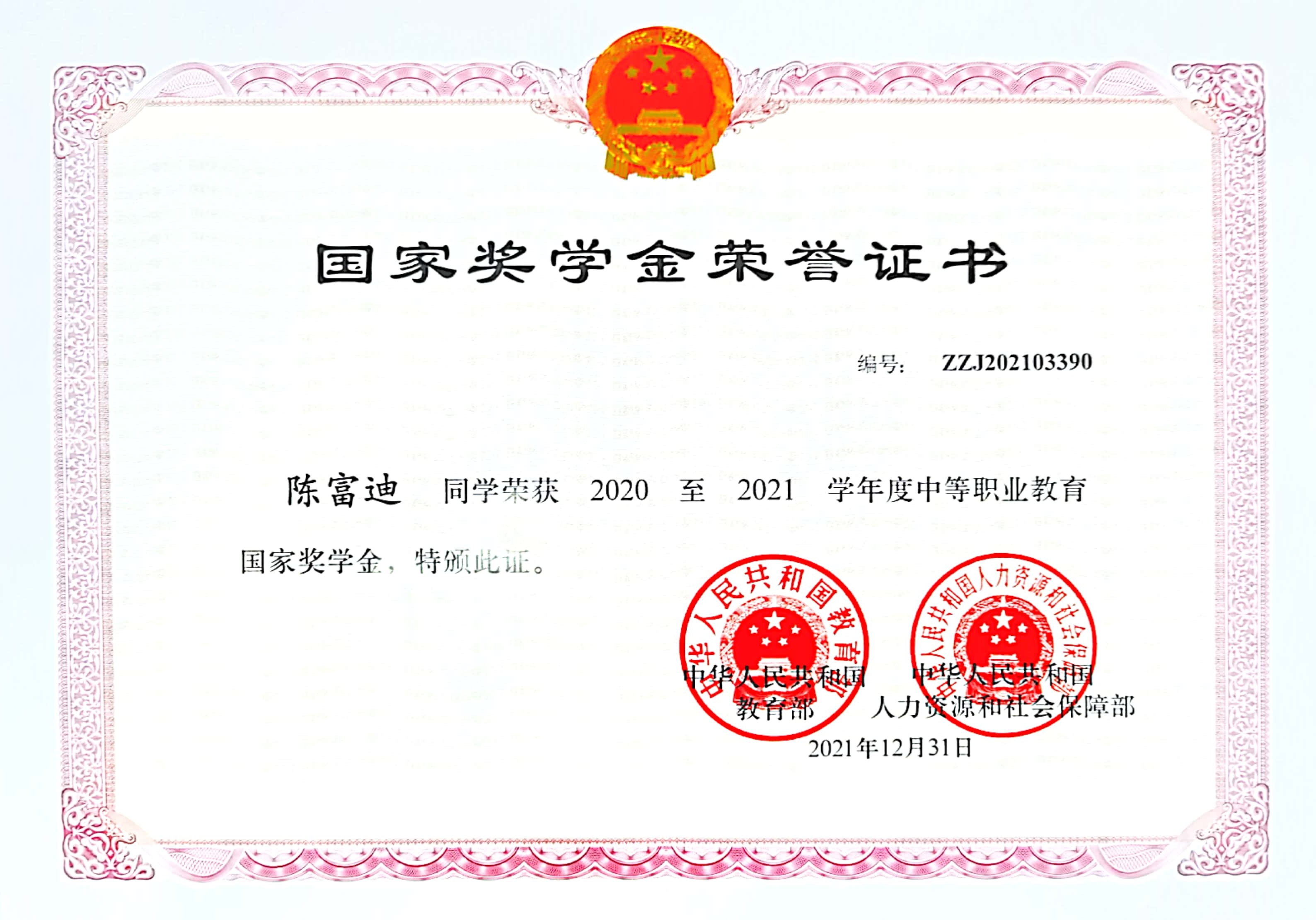 热烈祝贺我校陈富迪、刘梦蓝、黄艳婷、涂雯雯、万岩这5位优秀学子获2020至2021学年度中等职业教育国家奖学金!