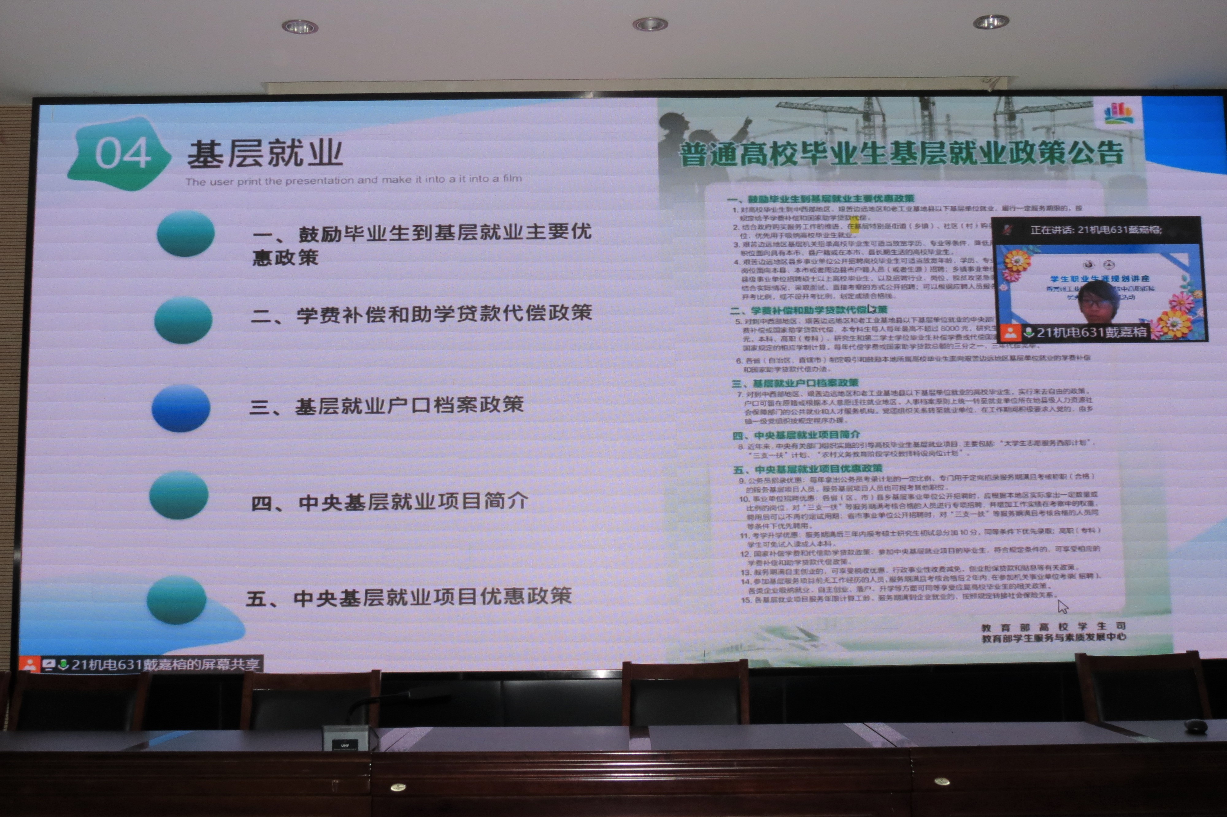 王娟老师的讲座从职业生涯规划的意义、职业生涯规划的定义、职业生涯规划的步骤及典型案例四个方面展开,理论与实际相结合很好的解析了学生职业生涯规划方面的困惑并针对性给出了解决方法,使同学们对职业生涯规划有了更加全面的认识,帮助同学们确立职业生涯规划发展目标指明方向。