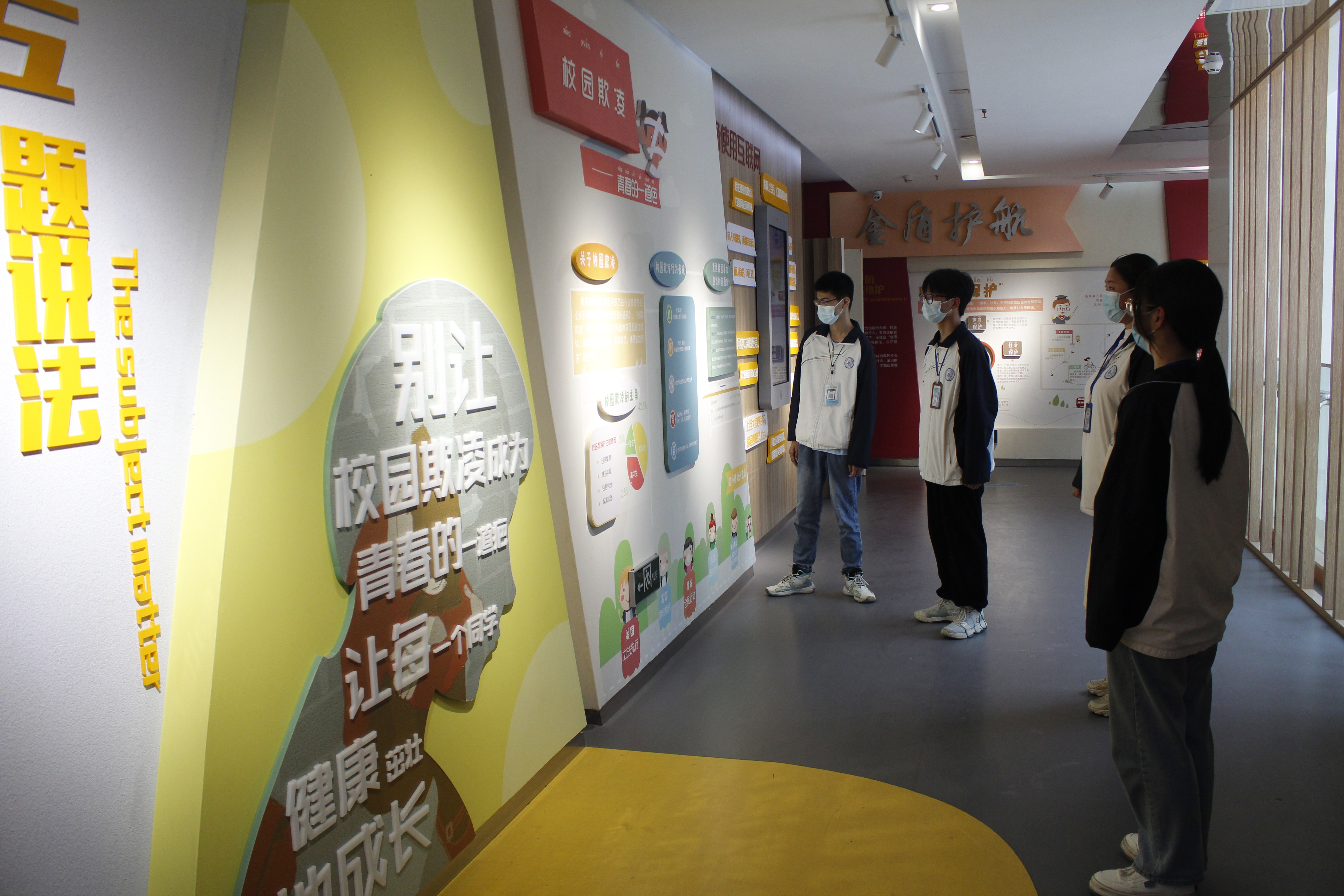 揭牌仪式后,同学们通过展板、视频、AR、VR、5D体验、PK答题等形式参观体验了多个场馆。在农耕文化体验馆,同学们学会分辨种子、体验农趣,懂得节约粮食,珍惜来之不易的幸福生活。在法治教育体验馆,同学们学会敬畏法律,增强法律意识和法治观念。在航天航空馆,同学们了解载人航天历史,获取航天知识,感悟中国航天精神,感叹祖国的强盛。在红十字生命体验馆,同学们了解相关安全常识,增强防灾减灾意识,掌握各种自救互救技能,为生命和健康保驾护航。