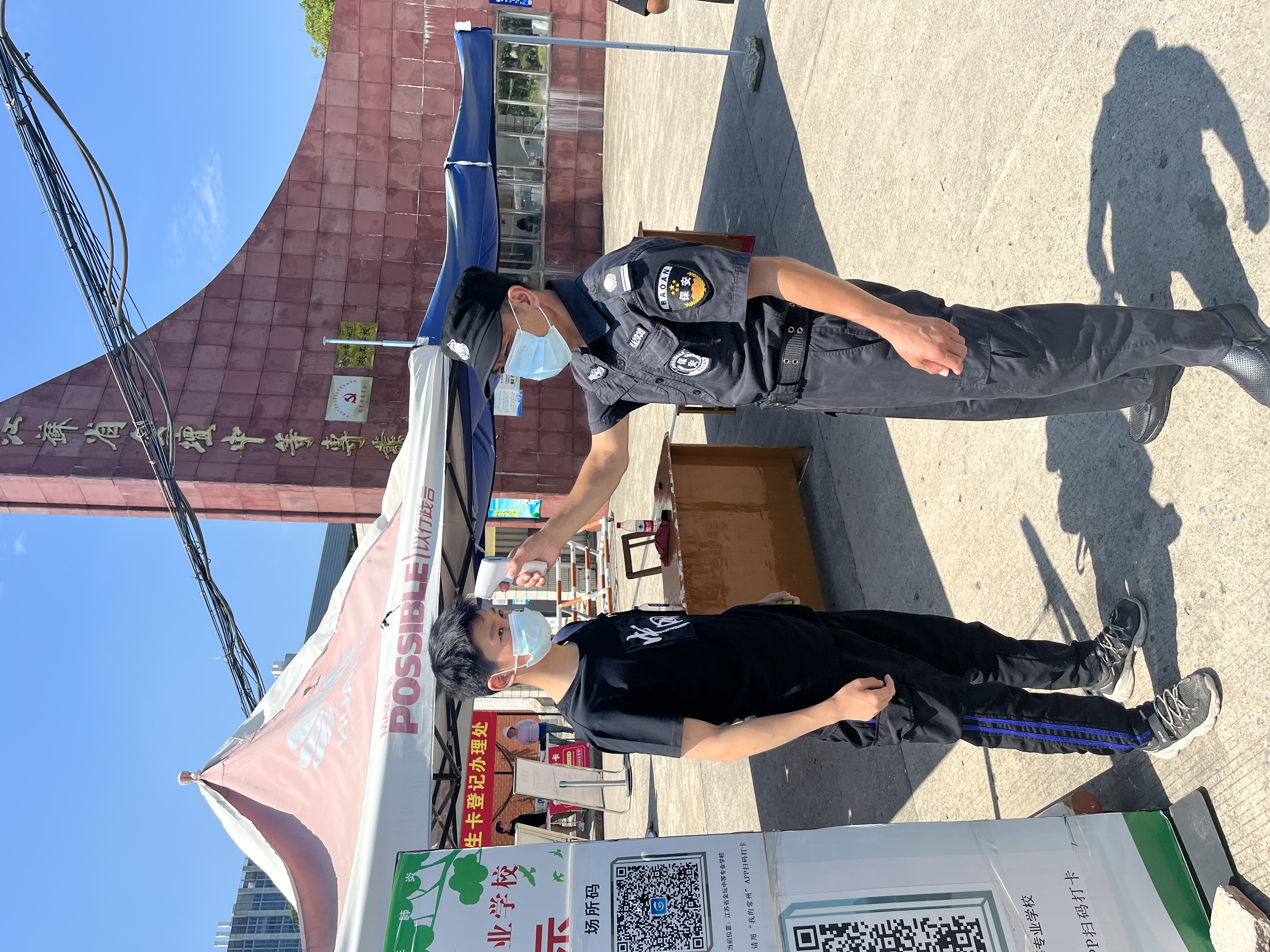 学校在东门入口处设立迎新生接待点,严格执行疫情防控要求,入校前学校保安人员对新生及家长的健康码、行程卡、场所码等进行一一查验,并进行体温测量。