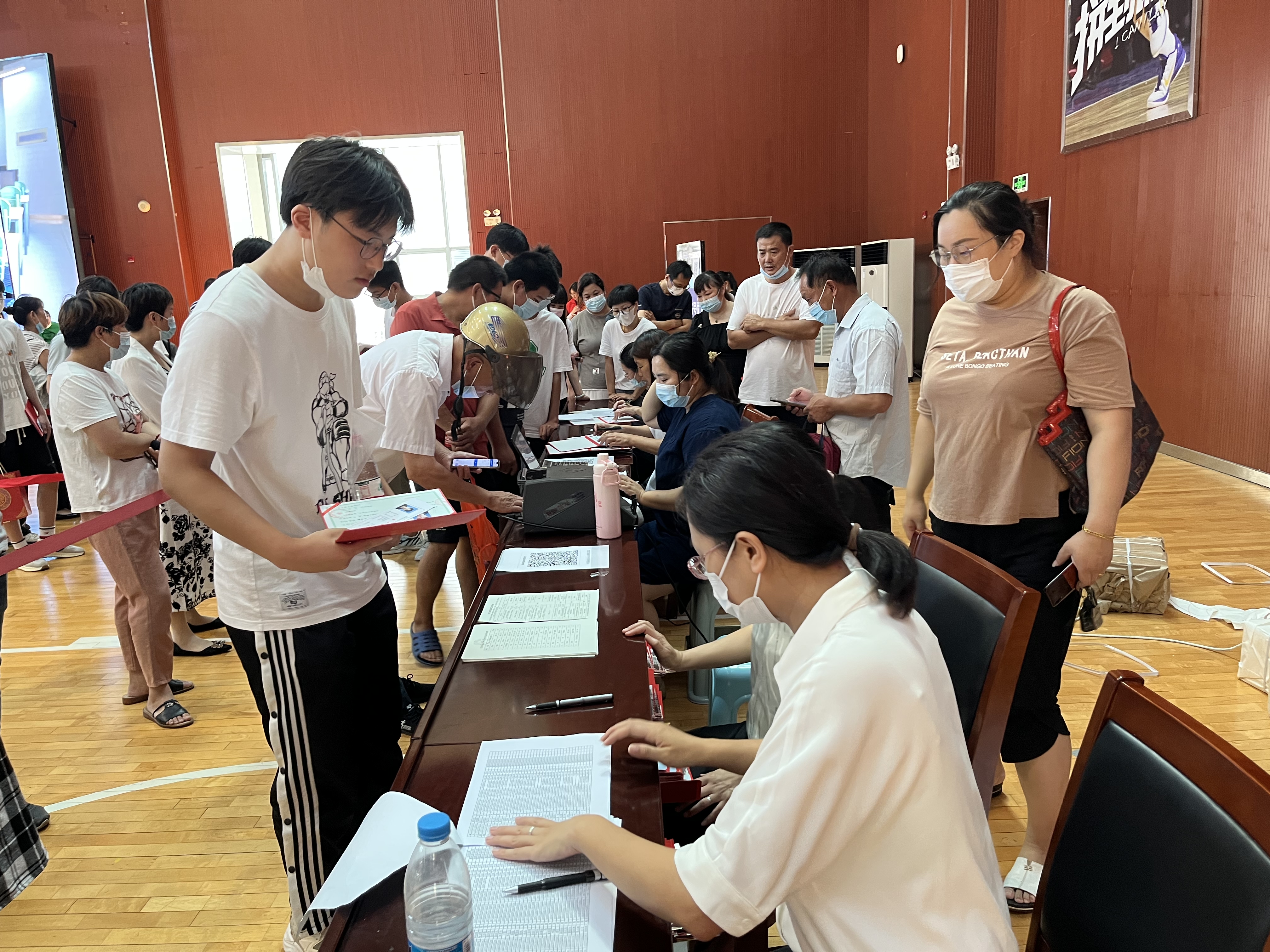早上8时起,新生在家长的陪同下陆续走入校园,在现场工作人员的指引下,循着指示牌,找到报到注册教室,核对报道信息,预缴代收学费,领取正式录取通知书和暑假作业,住宿生领取生活用品单,各项工作井然有序。