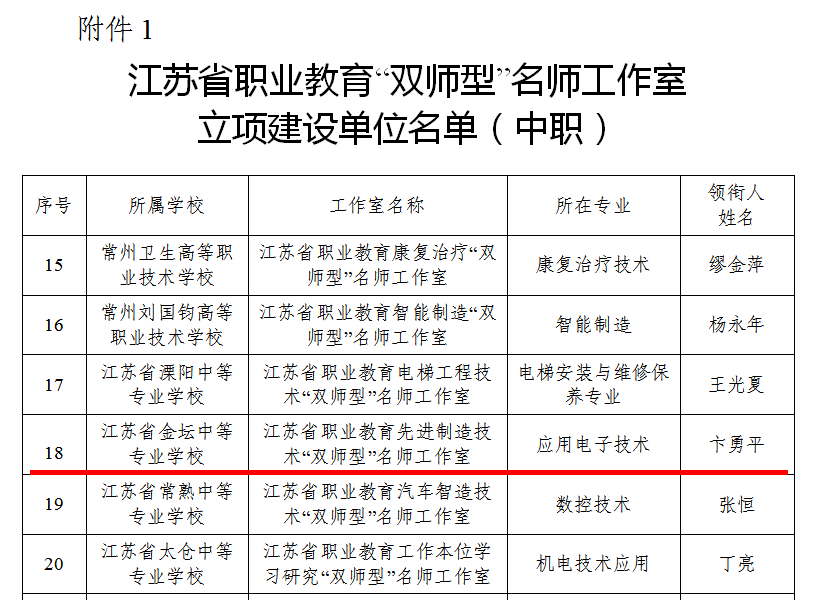 近日省教育厅公布了首批江苏省职业教育“双师型”名师工作室建设单位名单,我校卞勇平校长领衔的江苏省职业教育先进制造技术“双师型”名师工作室成功获批立项。据悉,首批江苏省职业教育“双师型”名师工作室立项建设单位共100个(高职50个、中职50个),这是我校“双师型”教师团队建设取得的重大成果。