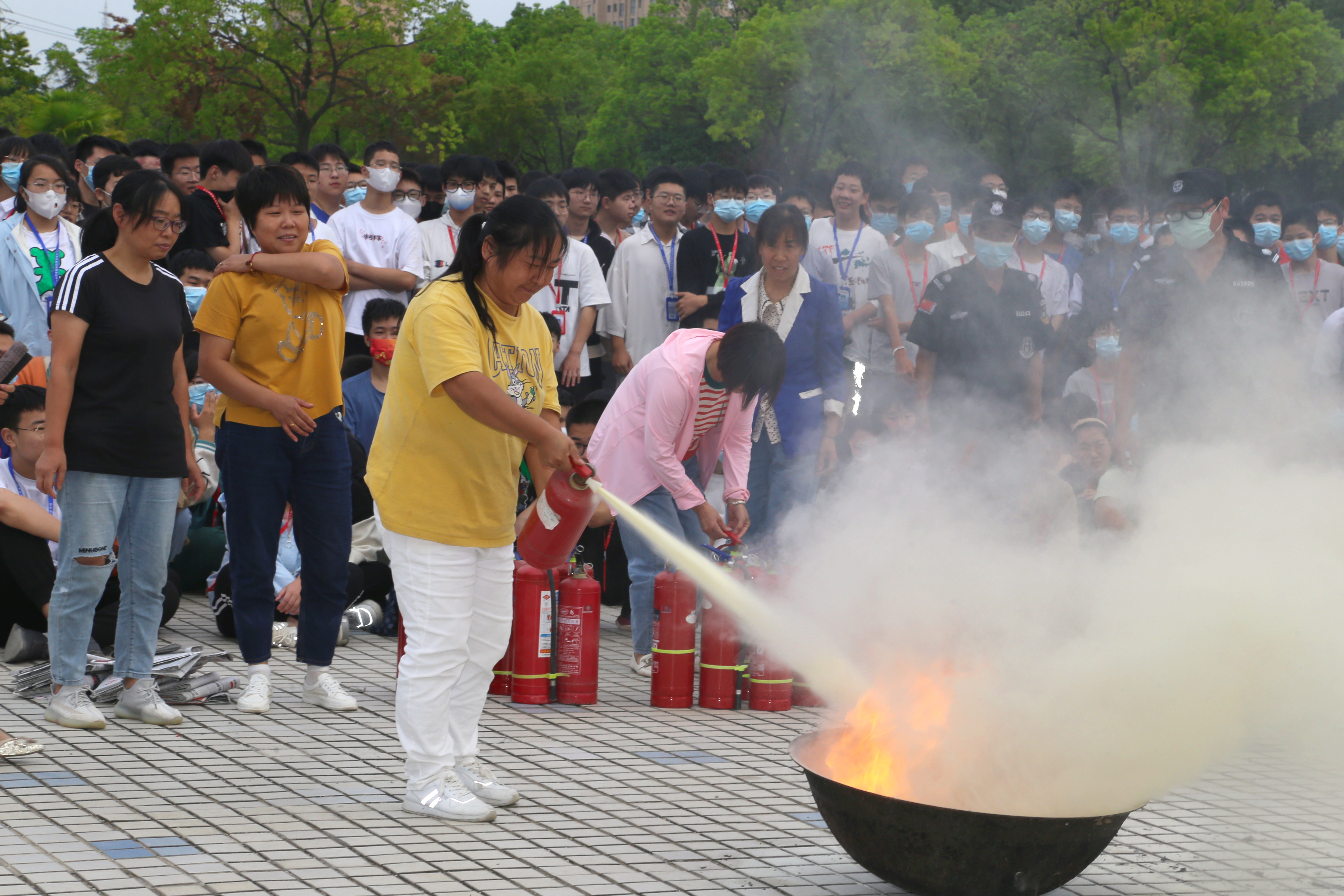 最后,消防员们仔细讲解了灭火器的操作规范并现场示范灭火器的使用,师生代表、宿舍管理员、保安员、场室管理员、食堂工作人员等进行了灭火实战操作。