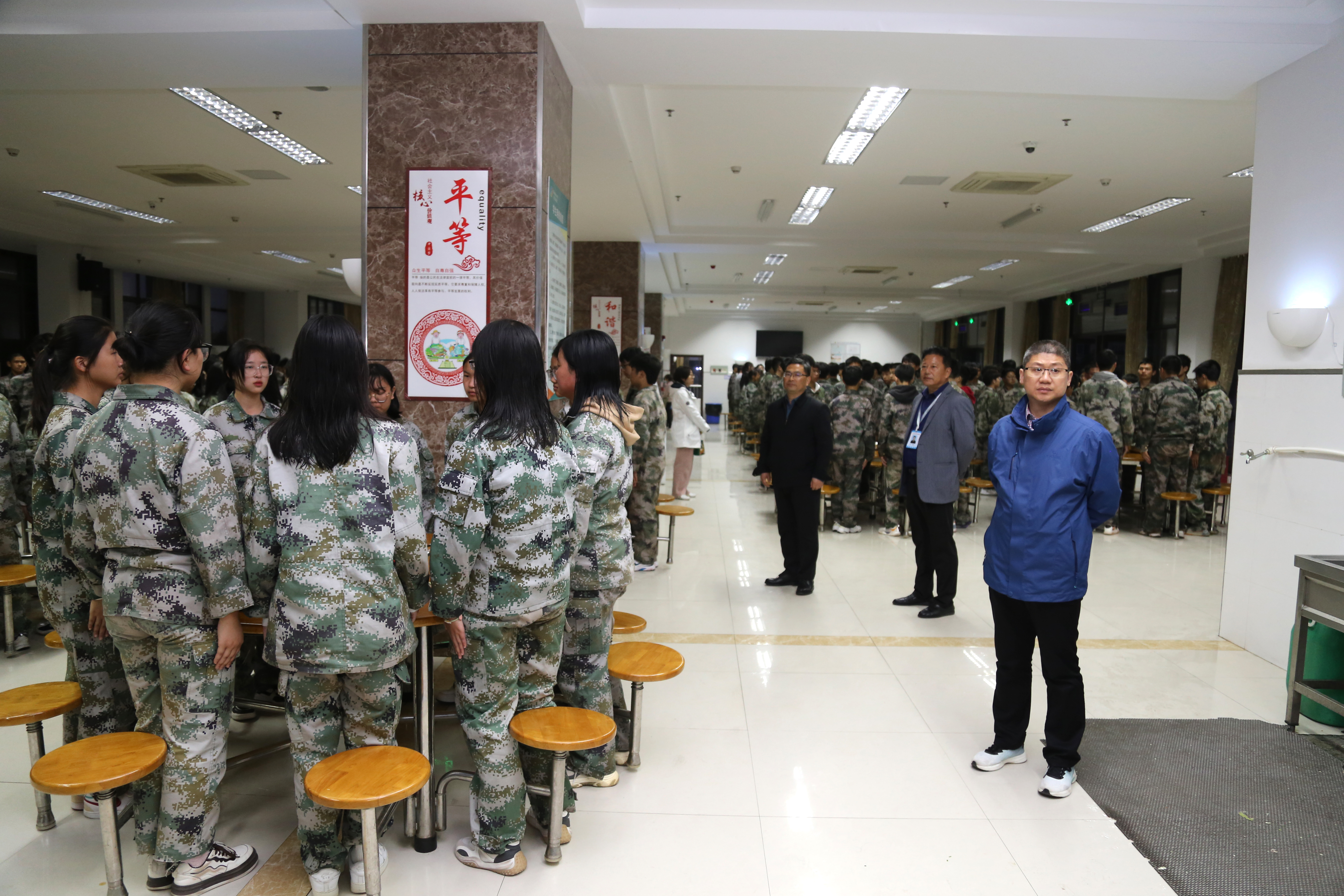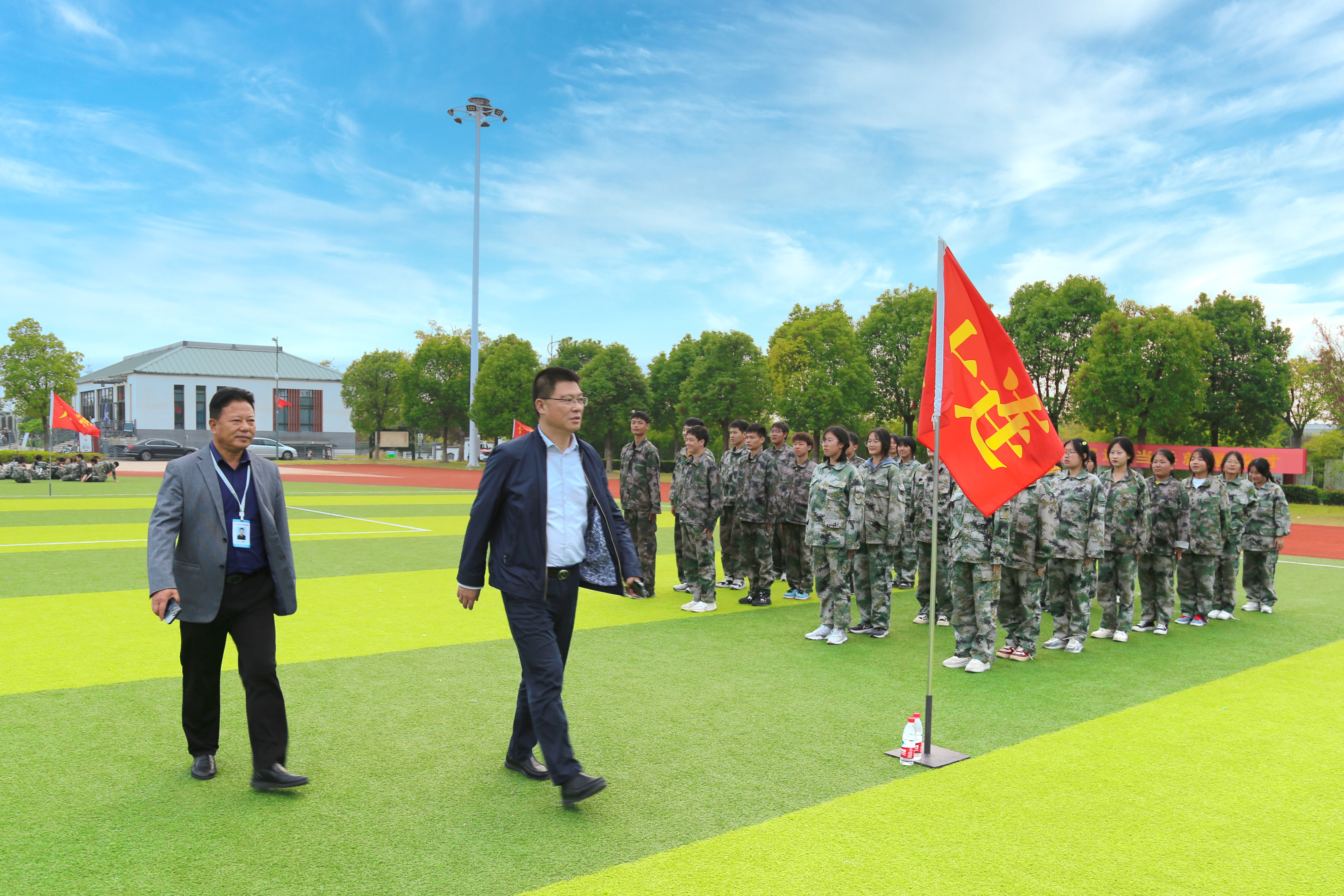 下午四时左右,卞勇平校长带领学校党政领导班子慰问参训师生,仔细询问了军训作息时间、训练强度、饮食等各个方面,领导的重视使参训师生感受到了来自学校的温暖关怀,大家大受鼓舞。