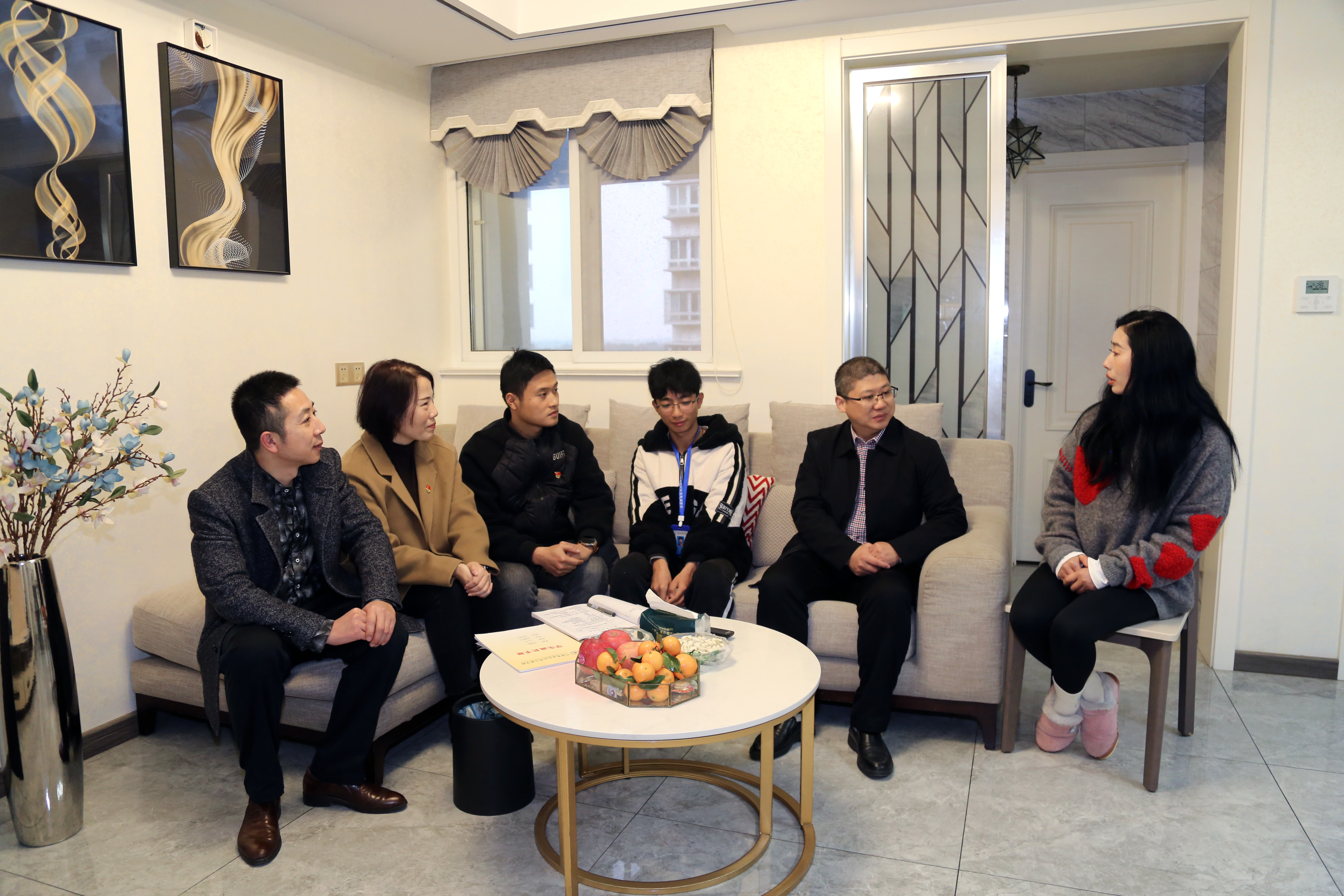为进一步拉近家长、孩子与老师之间的距离,密切家校联系,促进家校和谐,形成家校协同育人体系。11月16日下午,我校充分发挥党员教师先锋模范作用,开展了“大家访”行动。学生工作处李志斌处长、团委副书记鲍彤、智能制造系曹志华副书记、党员教师章小妹、徐风山等一行,先后来到位于华城天赐园和元巷小区的学生家中,同家长促膝交流沟通,共话学生成长。