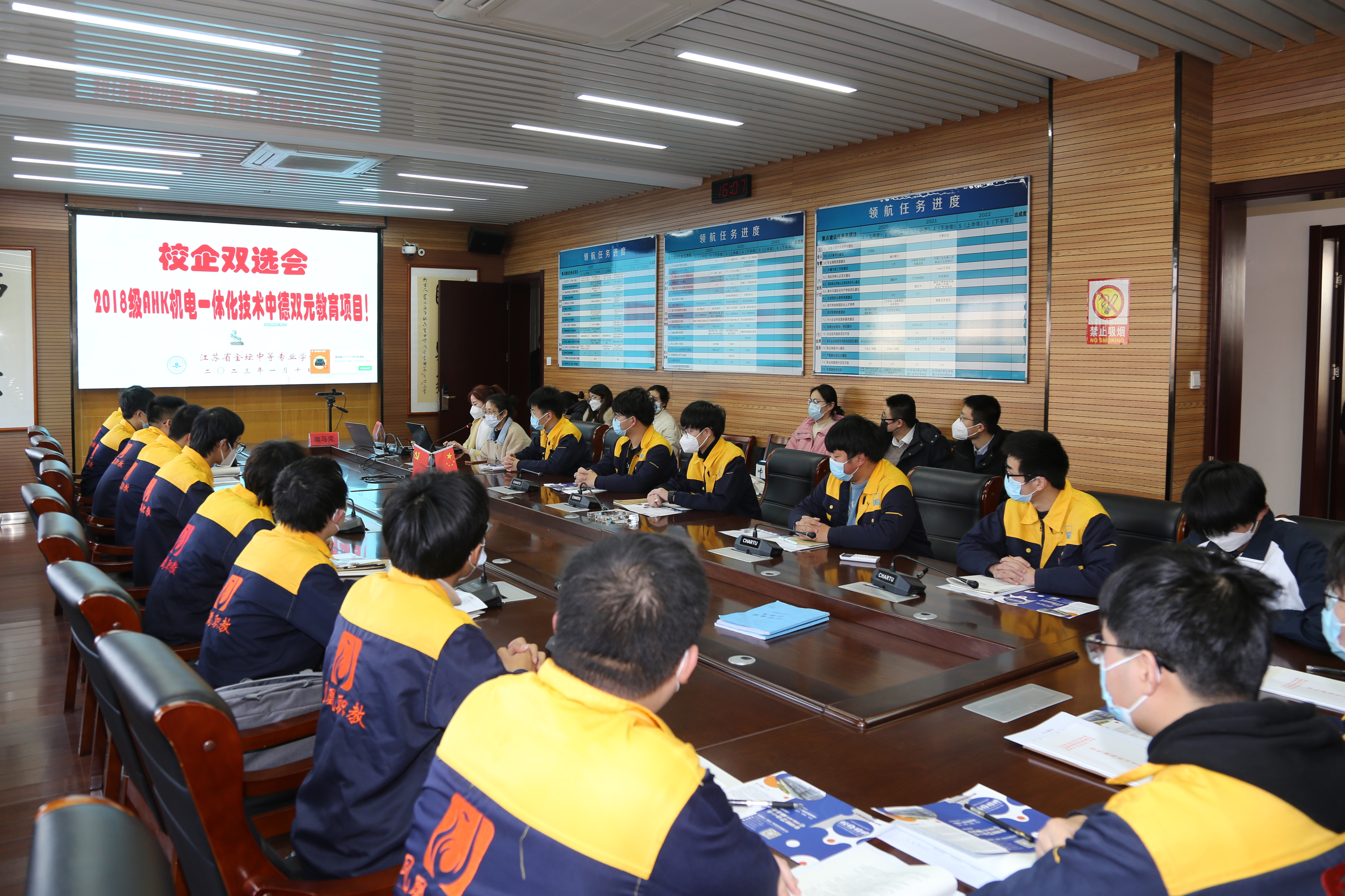 1月10日下午四点2018级AHK机电一体化中德双元教育项目双选会在我校顺利举办,来自中德(常州)创新产业园5家德企,科普费尔、迈恩德、思拓达、埃斯杰贝、埃马克参加了现场双选。