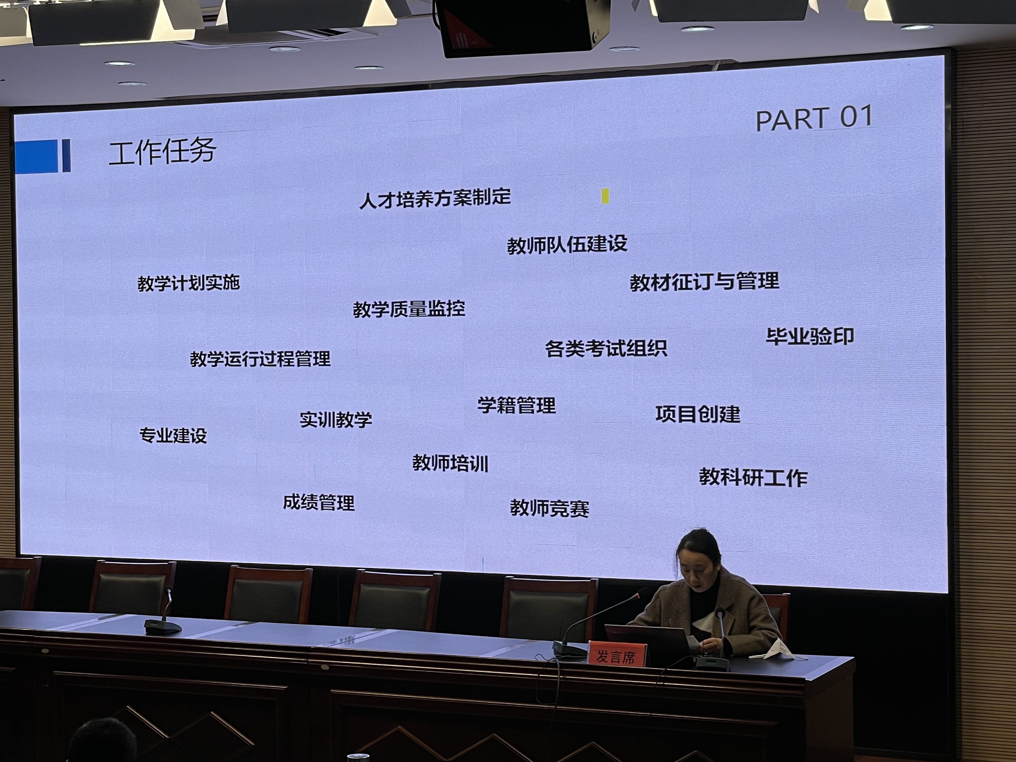 随后,学校12个职能部门的负责人分别汇报2022年部门工作开展情况、取得的成效和工作亮点,分析了工作中存在的问题与不足,并提出2023年的努力方向。