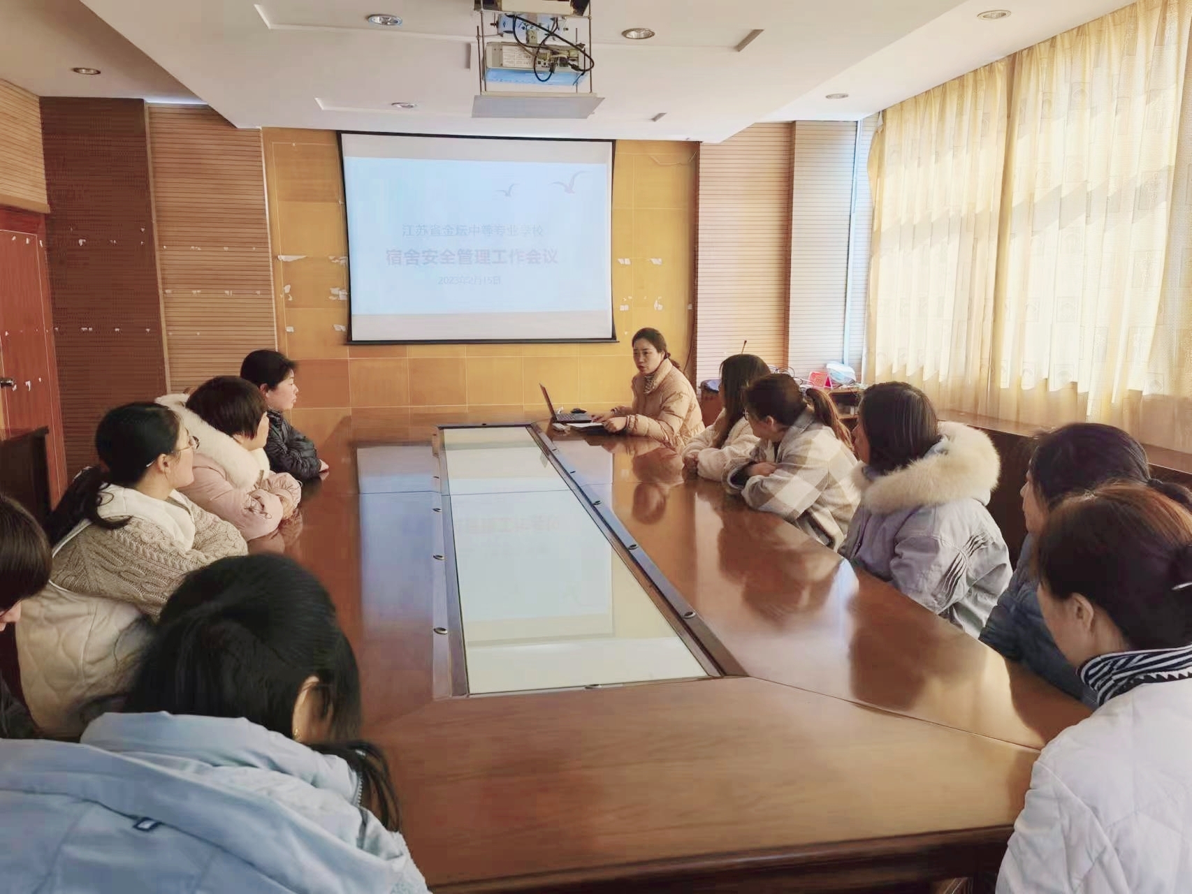 为做好新学期安全防范工作,切实保障住宿学生安全, 2月15日中午,在行政楼二楼会议室召开宿舍安全管理工作专题会议,汤英俊副校长、后勤服务处陈亮处长、学生工作处蒋云霞副处长及全体宿舍管理员参加会议。