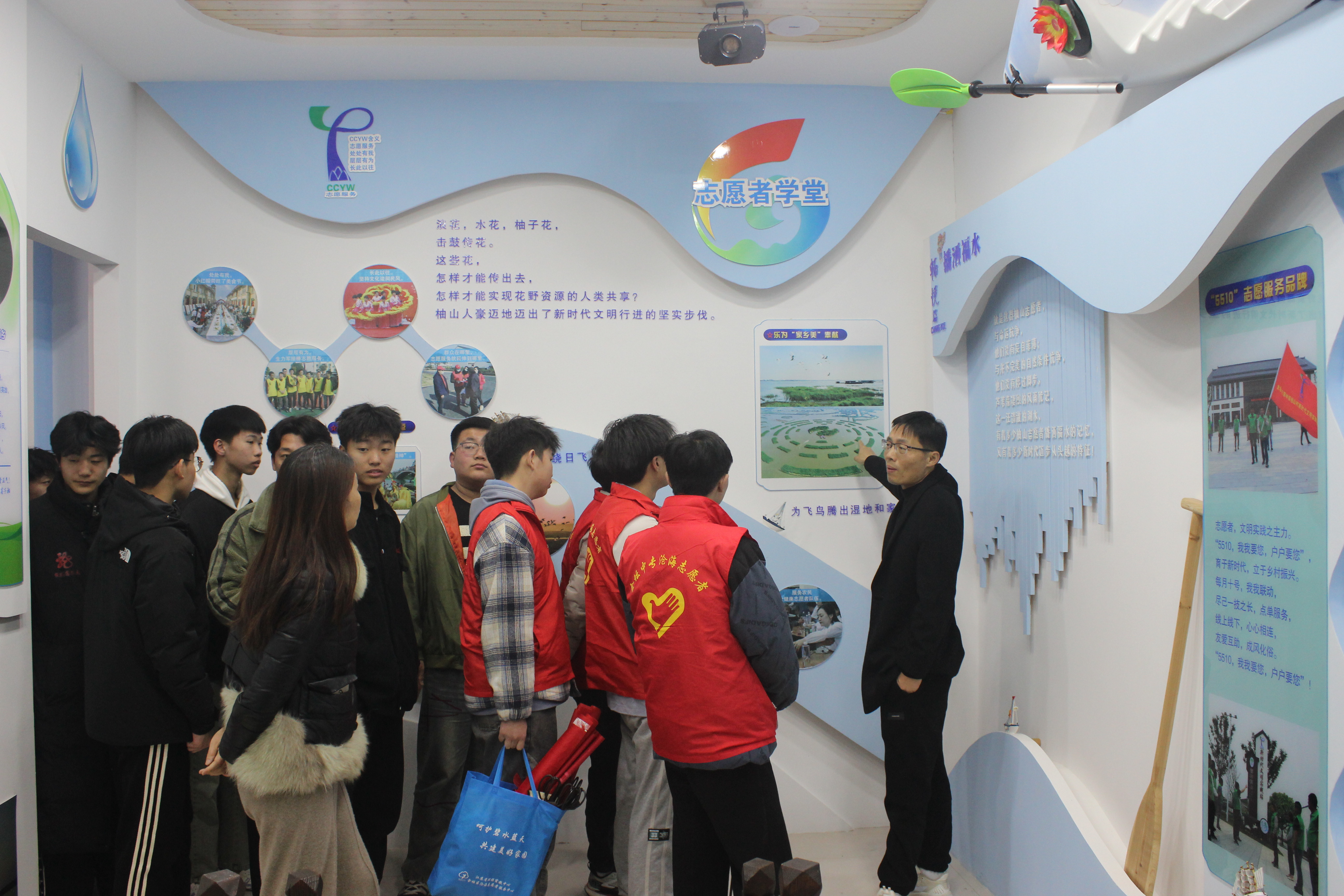 讲座结束后,同学们乘车来到美丽的江南水乡——儒林镇柚山村。现场参观了柚山村新时代文明实践站。并前往长荡湖畔,儒林镇水利站的同志介绍了长荡湖流域河道管护工作,为同学们展示了无人机巡河等高科技护河手段。最后,同学们沿湖开展了环境保护志愿活动,对河道障碍物及岸坡堆放垃圾进行清除,确保河道顺畅,水质干净。