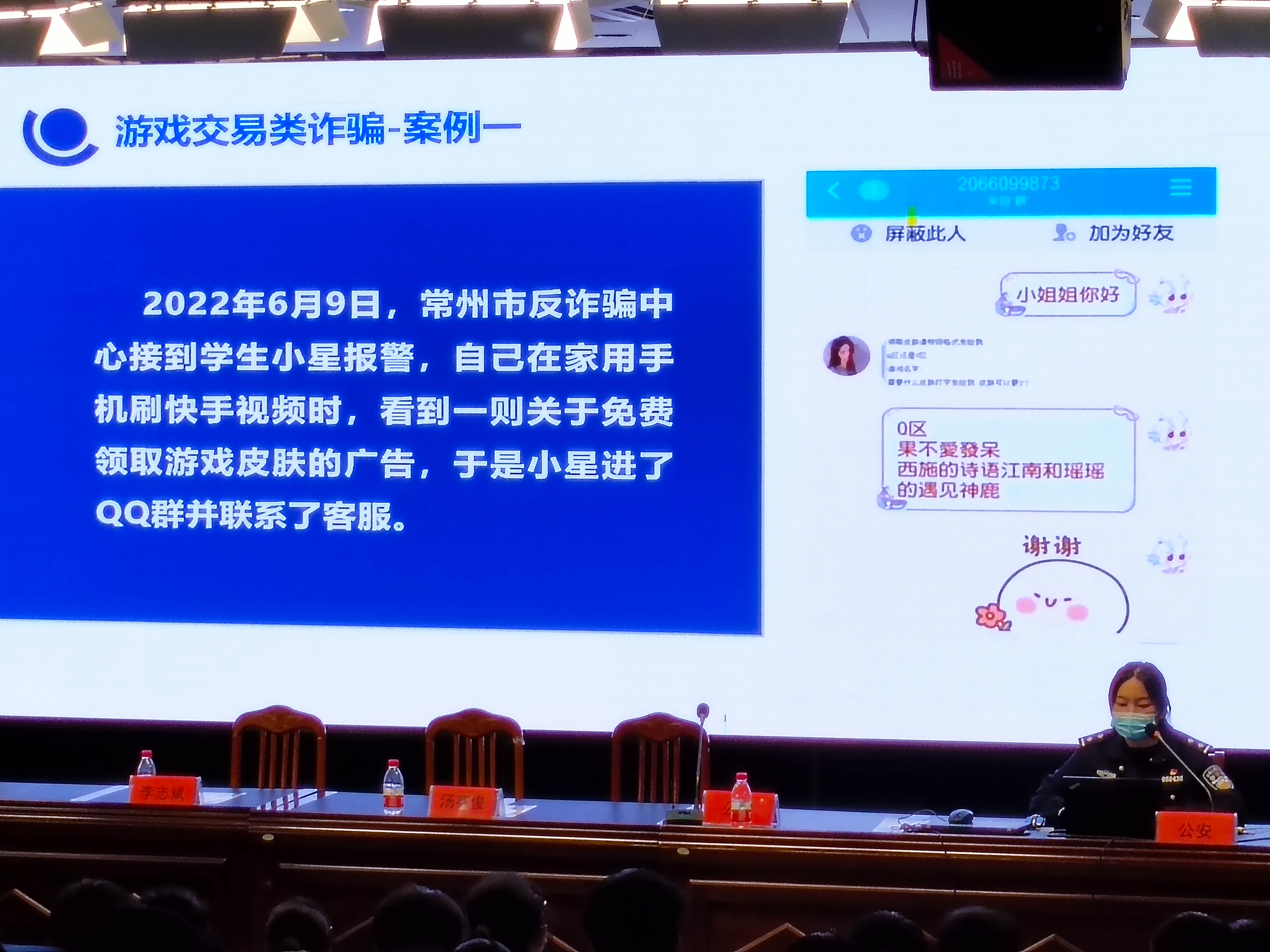 为预防校园欺凌事件和网络诈骗的发生,进一步增强学生自律意识和自我保护意识,培养学生良好品行,有效预防未成年人犯罪,有效遏制电信诈骗,切实保障师生的财产安全,2023年3月7日下午,常州市职业院校章小妹名班主任工作室联合东城派出所开展了“预防校园欺凌和网络诈骗”法制安全主题教育讲座。