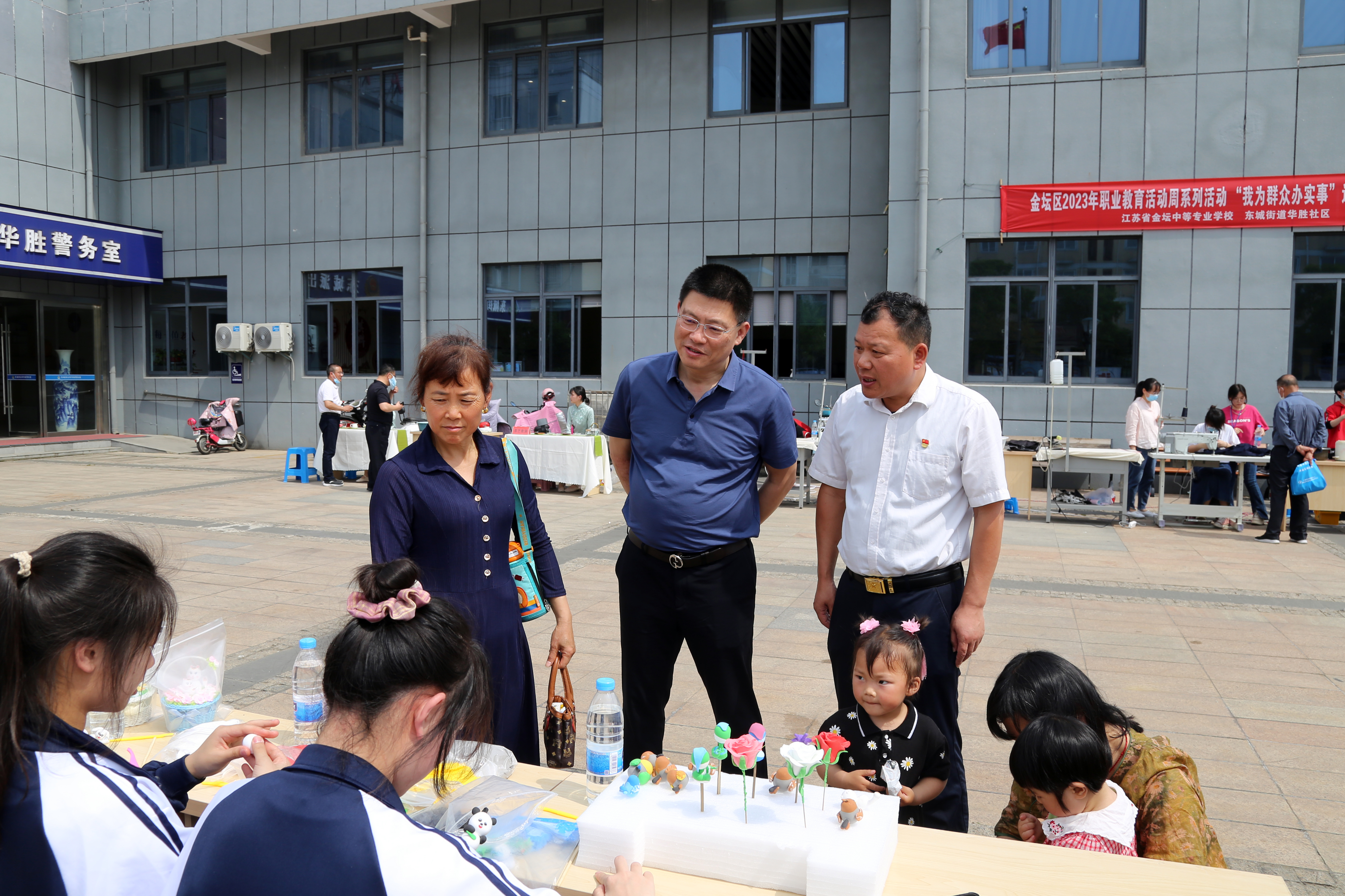 《中华人民共和国职业教育法》实施一周年,职业教育服务经济社会发展能力愈加显著,为进一步树立金坛职业教育良好形象,发挥职业教育特色和优势,服务百姓生活,5月16日上午,省金坛中专在东城街道华胜社区党群服务中心广场,开展了主题为“我为群众办实事”的职业教育活动周“送技能进社区”活动。