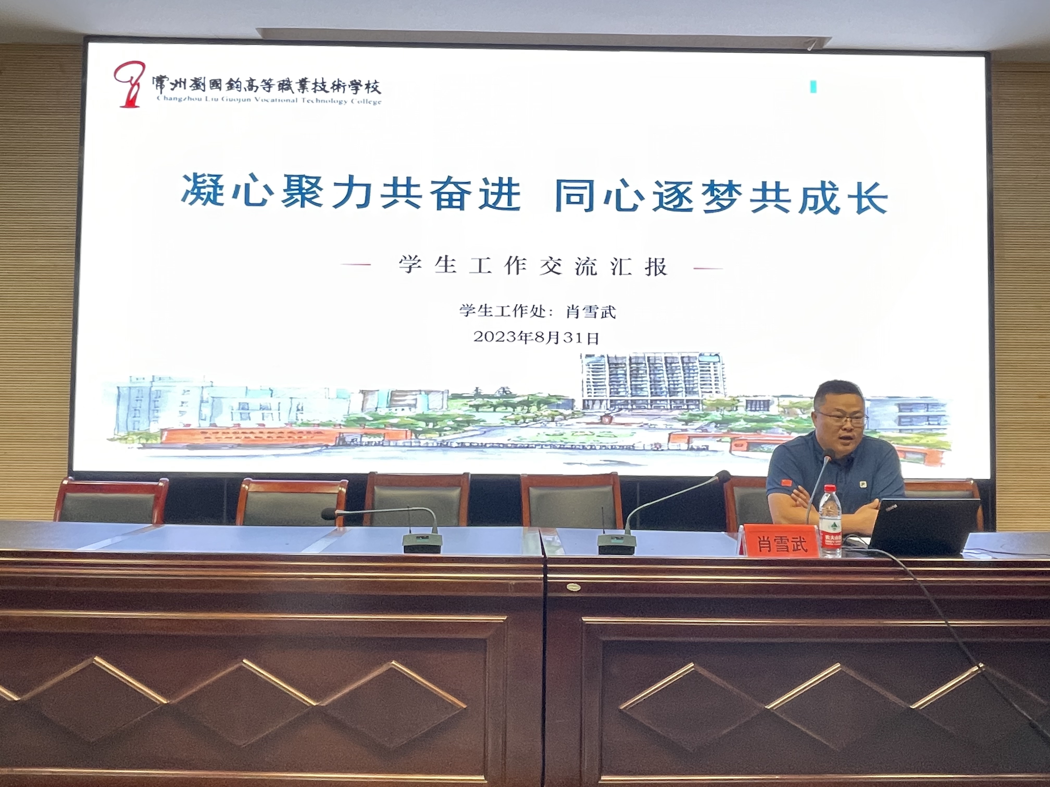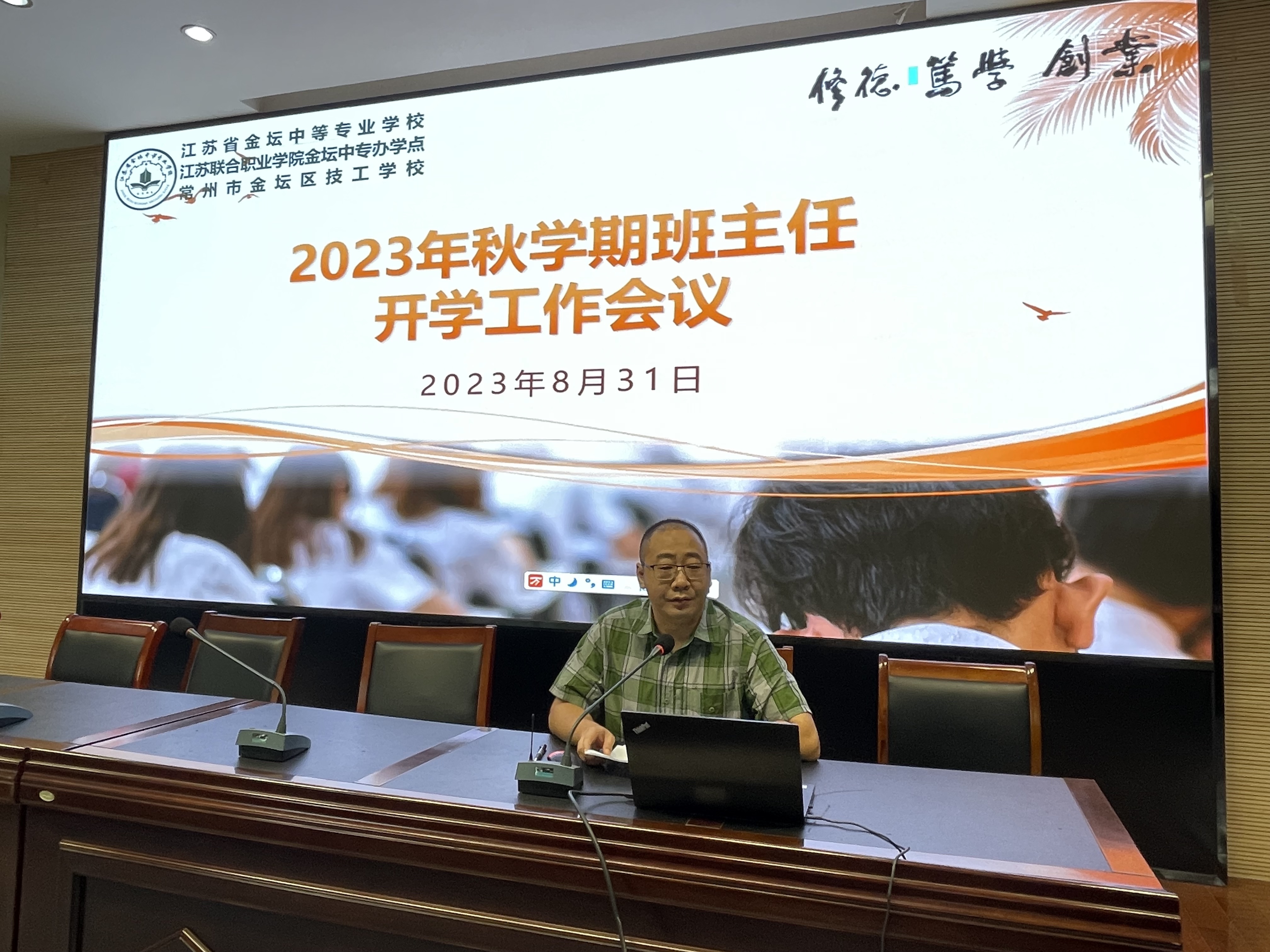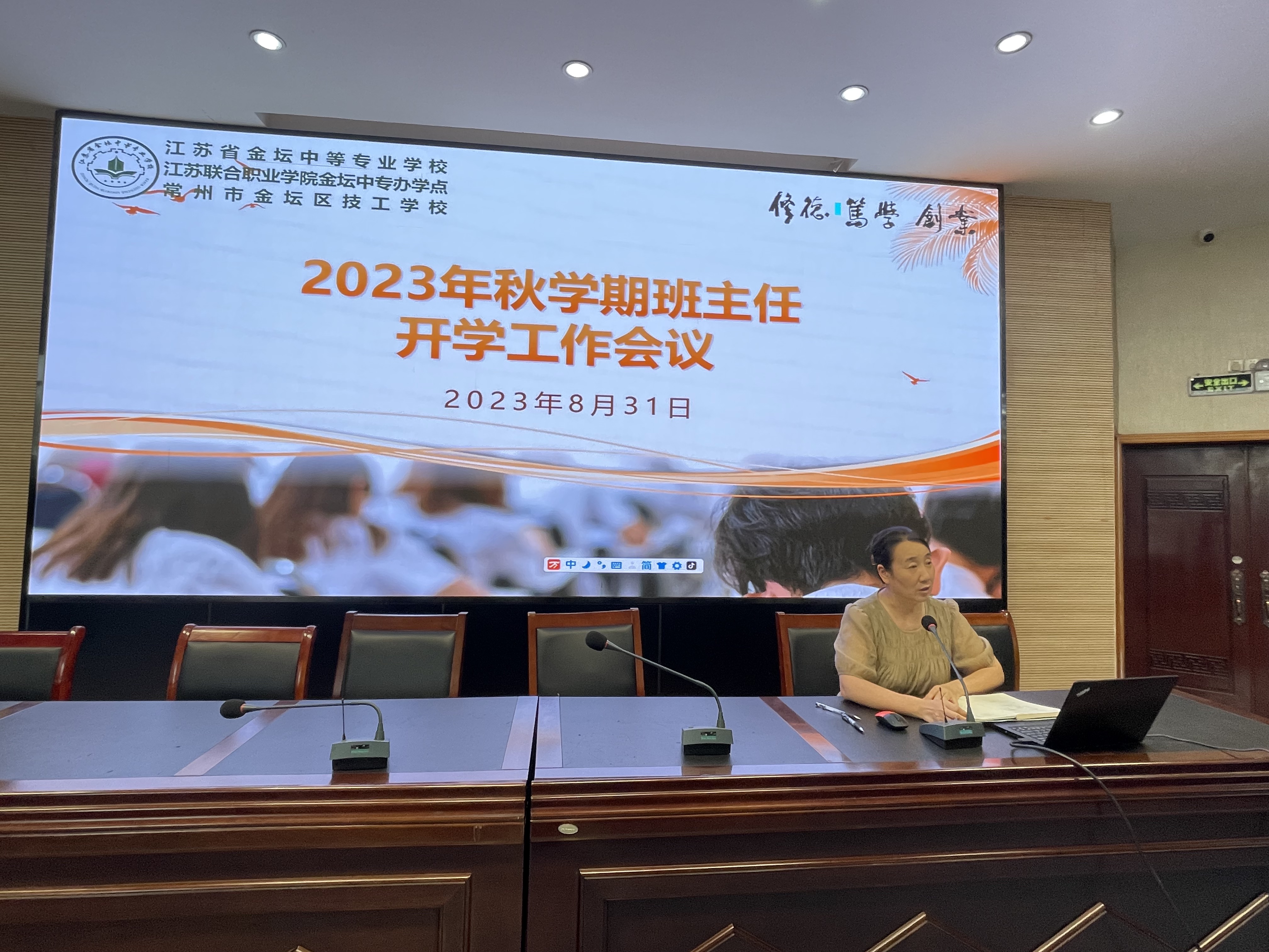 下午,蒋处主持召开了2023年秋学期全体班主任开学会议,首先后勤服务处谌勇副处长、校企合作处陈云东处长、教学科研处陈海霞处长依次上台,分别就校内卫生和食堂就餐问题、考工实习和新生报到问题、教材领取和教学开展问题等进行了讲解和要求。随后,蒋云霞副处长就老生和新生的报到时间流程、开学典礼和后续活动安排、材料的收取与上报等事项进行了逐一的讲解。最后,汤校对各位班主任的认真辛苦的工作表示了感谢,并对接下来的学生报到和后续班级管理工作提出了要求。汤校指出,学生工作不能有侥幸心理,要抓严抓实各项工作要求,同时也要善于发现与学生相处过程中的一个个闪光点,希望各位大家都能圆满完成本学期的班主任工作。