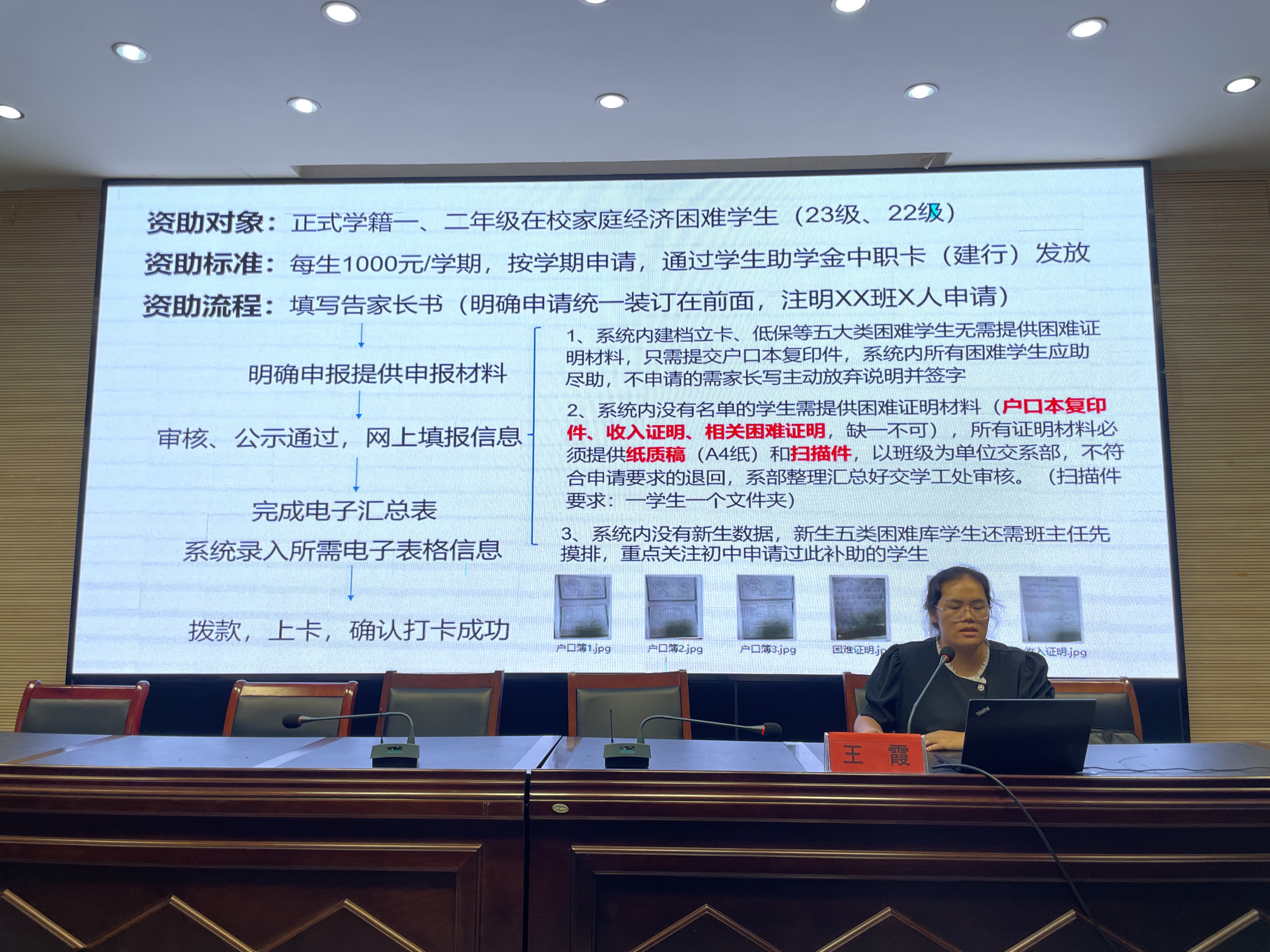 为进一步推进我校“三信”主题教育实践活动,加强班主任队伍建设,充分发挥班主任在学校教育和管理工作中的重要作用,及时总结和推广班级管理先进经验,切实提升班主任专业素养和管理水平,明确工作任务和职责,确保2023年秋学期学生报到及后续教育教学工作的顺利展开。8月30日下午起,我校开展了为期一天半的暑期班主任培训活动。本次活动由学工处蒋云霞副处长主持,学工处全体成员、各系部负责人、全体班主任参加了本次培训,汤英俊副校长全程参与并对班主任工作提出了要求和期望。