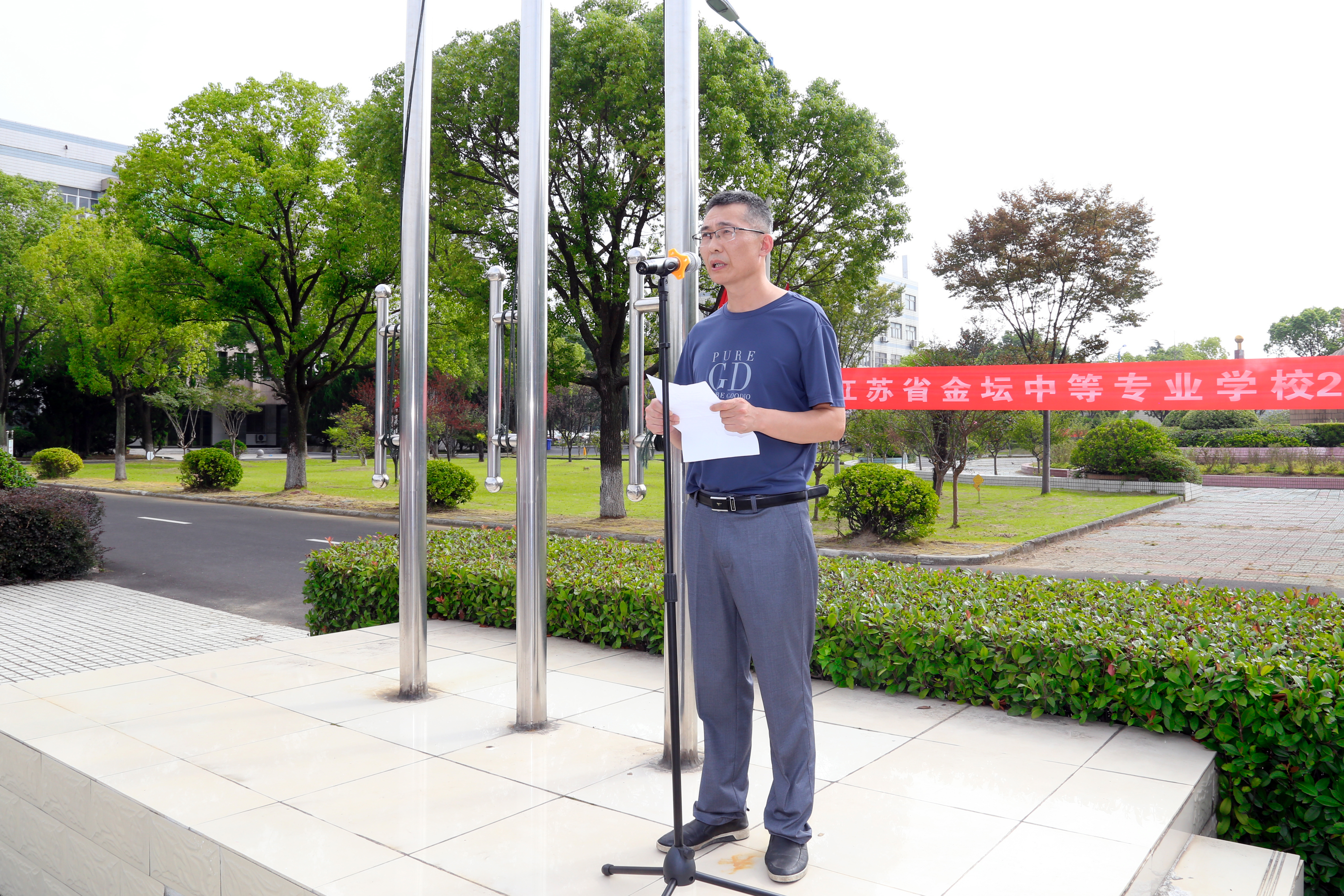 国旗护卫队在全校师生的注目下,踏着正步,徐徐走来。在慷慨激昂的国歌声中,五星红旗冉冉升起,拉开了开学典礼的帷幕。