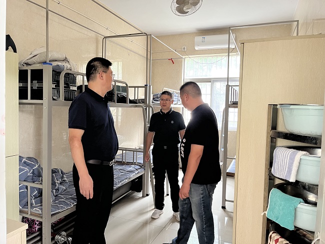 中秋节和国庆节即将来临,为进一步认真贯彻习近平总书记关于安全生产和防灾减灾救灾的重要论述,落实校园安全工作,消除安全隐患,确保在校师生“双节”期间的安全。9月28日上午,学校党总支副书记、校长卞勇平带队开展节前安全排查整治,对实训室、食堂、宿舍等重点场所的各项安全举措落实情况进行实地督查指导,李志斌副校长、后勤服务(保卫)处谌勇副处长陪同检查。