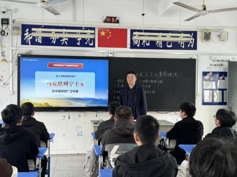 潘书记的课理论性强、思想深邃、内容详实、情感真挚,整个授课过程穿插了很多师生互动环节,既有理论高度,又有现实温度。彭书记给同学们分享了“中国桥梁”、“中国高铁”、“中国新能源汽车”从无到有、发展超越、走出国门的生动故事,让同学们深深领悟到昔日国弱民穷的中国发生了怎样的历史巨变,深刻认识“中国的发展进步为人类文明作出重要贡献”这一论断。授课结束后,踊跃的同学们还针对生活和学习中的困惑向潘书记请教,书记耐心地一一解答,并以“新时代、新青年、新担当、新作为”寄语同学们思考怎样肩负起新时代青年责任与担当。同学们纷纷表示,通过本次思政第一课的学习,深受启发,作为青年大学生,要学好技能本领,以青春为笔,以梦想为墨,书写出无愧于时代、无愧于人民的报国答卷。