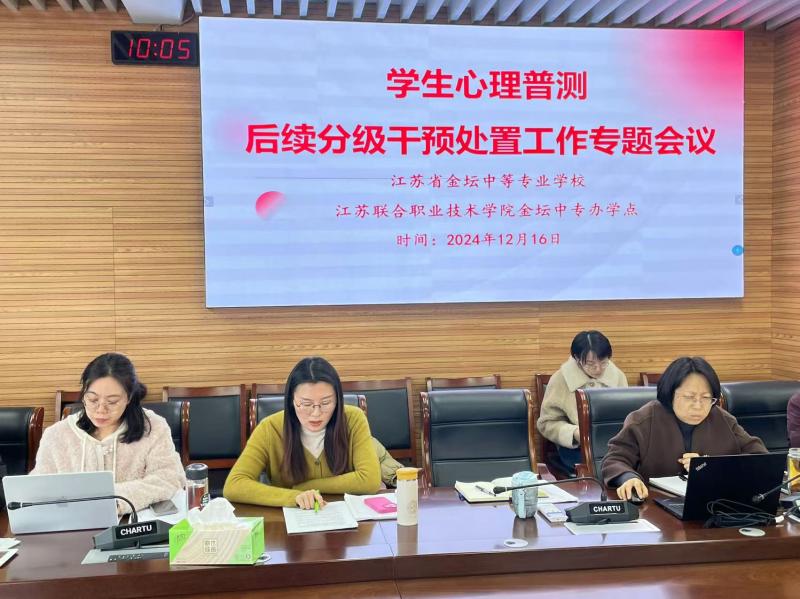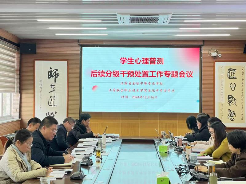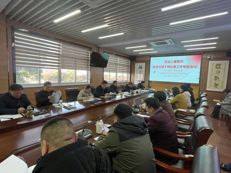 为深入贯彻落实上级部门关于学生心理健康教育工作的相关要求,准确掌握我校学生心理健康状况,提高心理干预工作的精准性和有效性,杜绝因学生心理问题引发的校园安全事件。12月16日上午,我校在行政楼308会议室召开了心理普测后续分级干预处置工作专题会议。校党总支潘凌燕书记、卞勇平校长、汤英俊副校长、杨益粉副校长、周建亮副校长、李志斌副校长、各职能部门和各系部负责人、以及全体专职心理老师参加了本次会议。会议由学工处谌勇处长主持。