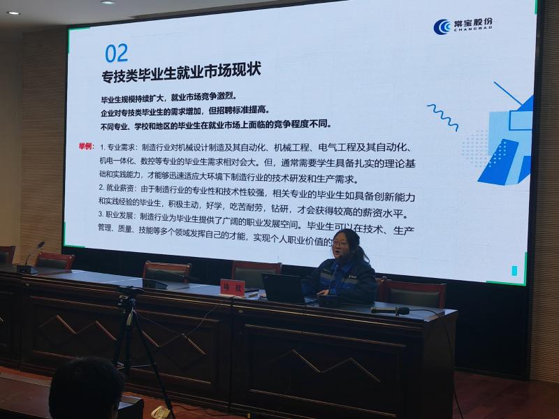 在就业形势日益复杂多变的当下,为帮助 2025 届数控、机电类专业毕业生精准把握就业方向,提升求职竞争力,我校于 12 月 19 日特别邀请了江苏常宝普莱森钢管有限公司人力资源部招聘主管徐欣,为同学们带来了一场极具针对性的就业专题讲座。