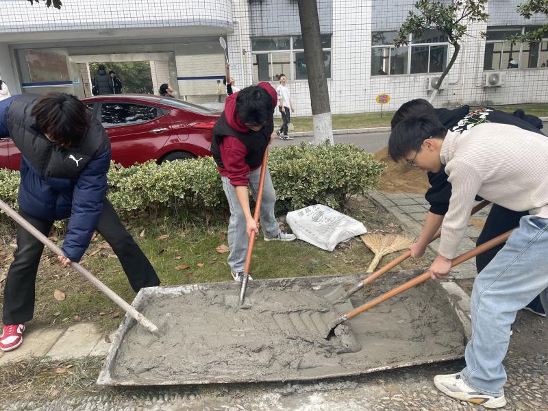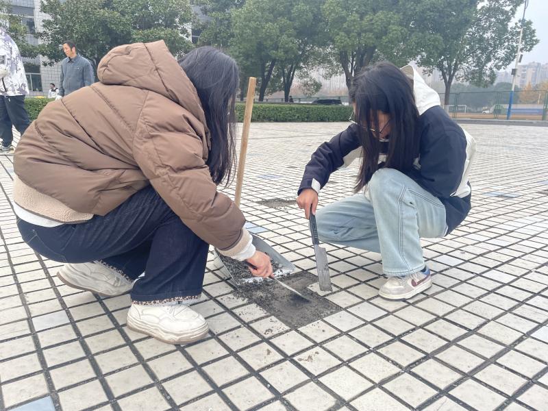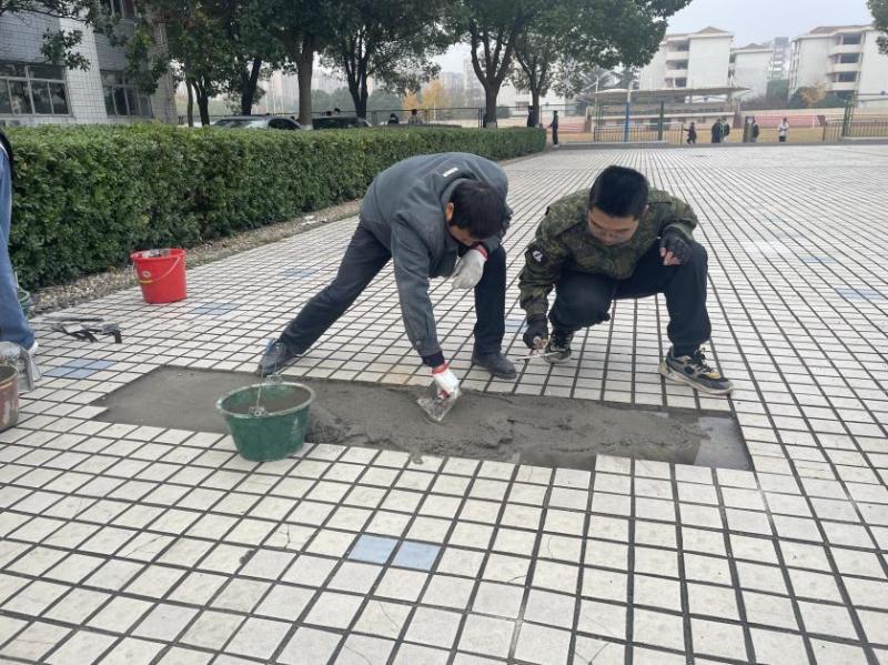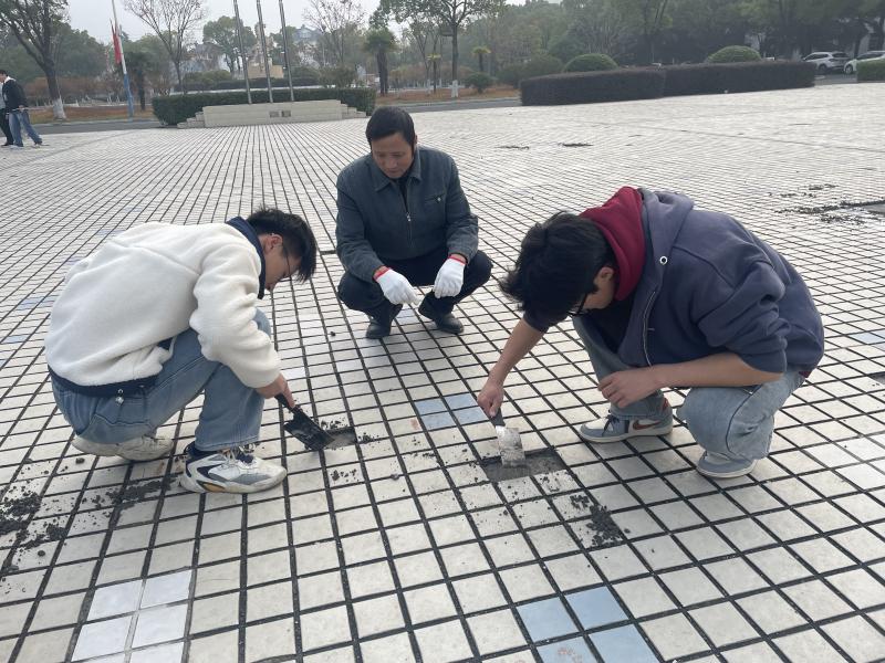 立足专业 服务校园——汽车工程系开展升旗广场地砖修补劳动实践活动