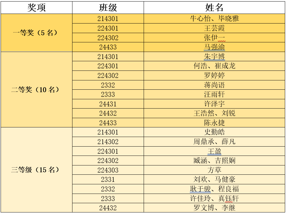 本次大赛老师们们从笔画、结构、章法、意境等方面对作品进行了综合考量,最终评选出一等奖5名,二等奖10名,三等奖15名。
