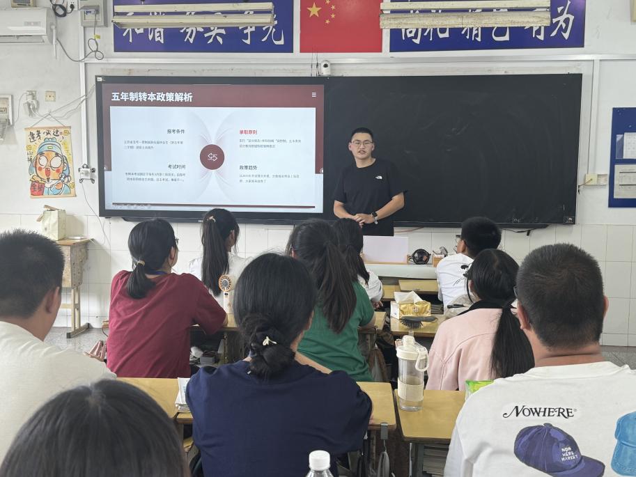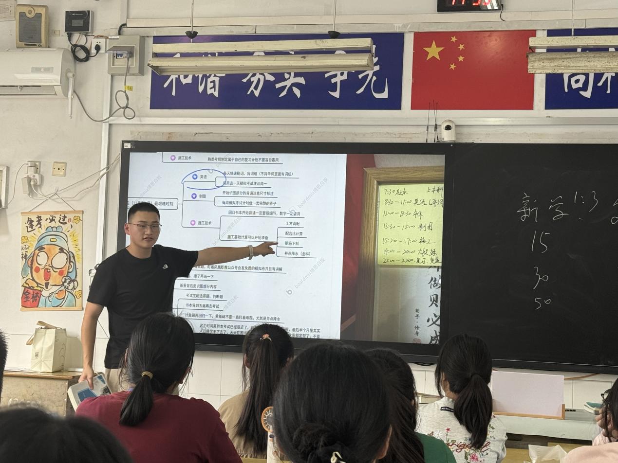 为帮助同学们明晰专转本备考方向,掌握科学学习方法,2025年6月17日周二班会课,我系224302工程造价班特邀成功上岸的工程造价专业学长张阳走进224302班教室,开展专转本经验分享交流活动,为同学们答疑解惑、指点迷津。